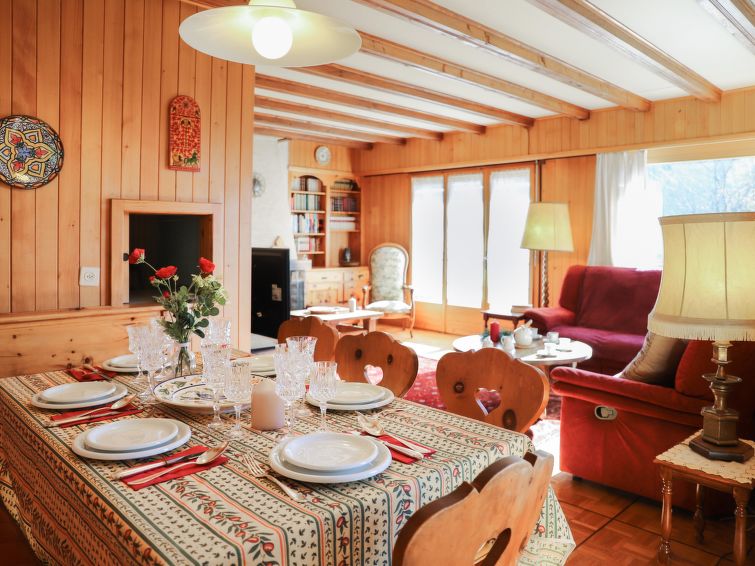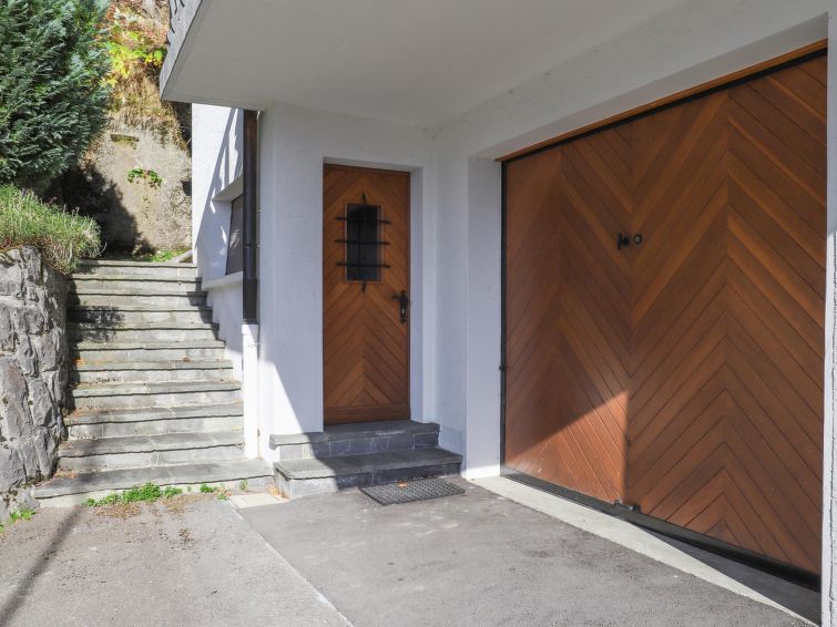 "Chalet Astrantia", 7-room chalet 110 m2 on 3 levels, south facing position. Simple and practical furnishings: living/dining room with open-hearth fireplace (only for decoration), dining table and TV (flat screen). Exit to the balcony, south facing position. 1 room with 2 beds (90 cm). Exit to the balcony, south facing position. Small kitchen (4 hot plates, oven, dishwasher, electric coffee machine, Capsules for coffee machine (Nespresso) extra, raclette grill) with hatch. Bath/shower, sep. WC. Upper floor: 1 small room, without wardrobe with 1 bed (90 cm). 1 room with 1 bed (90 cm). 1 double bedroom with 1 french bed (160 cm). Exit to the balcony, south facing position. 1 double bedroom with 2 beds (90 cm). Exit to the balcony, south facing position. Shower, sep. WC. Wooden floors. Large balcony 20 m2, south facing position and west facing position, small balcony 8 m2, south facing position. Balcony furniture. Beautiful panoramic view of the mountains. Facilities: washing machine. Internet (WiFi, free). Parking (3 cars), garage. Please note: non-smoking house. No lift.