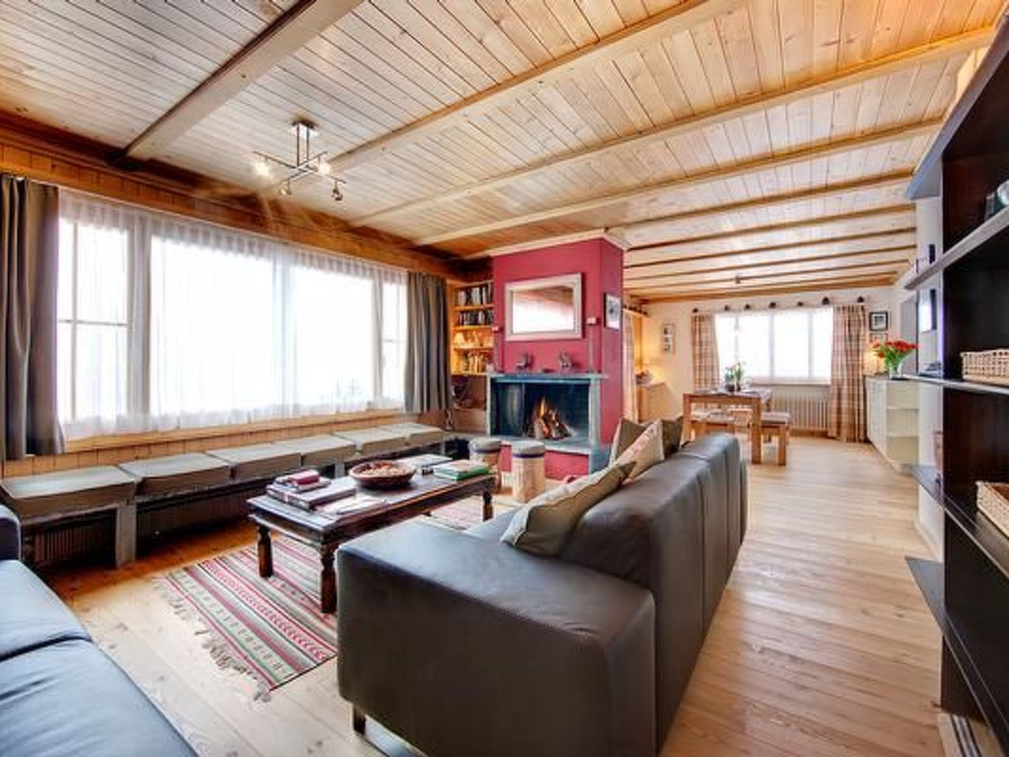 The interior of Chalet Im Wieselti is thoughtfully divided into two spacious apartments, measuring approximately 90m² and 80m², capable of hosting 8 to 10 guests in total comfort. Each apartment is a self-contained haven of modern conveniences, featuring newly renovated kitchens replete with high-quality amenities, televisions with cable TV, and high-speed Internet access. Comfort reigns supreme with cozy fireplaces complemented by provided firewood, snug goose down duvets, and practical inclusions such as an iron and ironing board. With bed linen and towels provided, each apartment offers a private and serene escape, ensuring a seamless holiday experience.