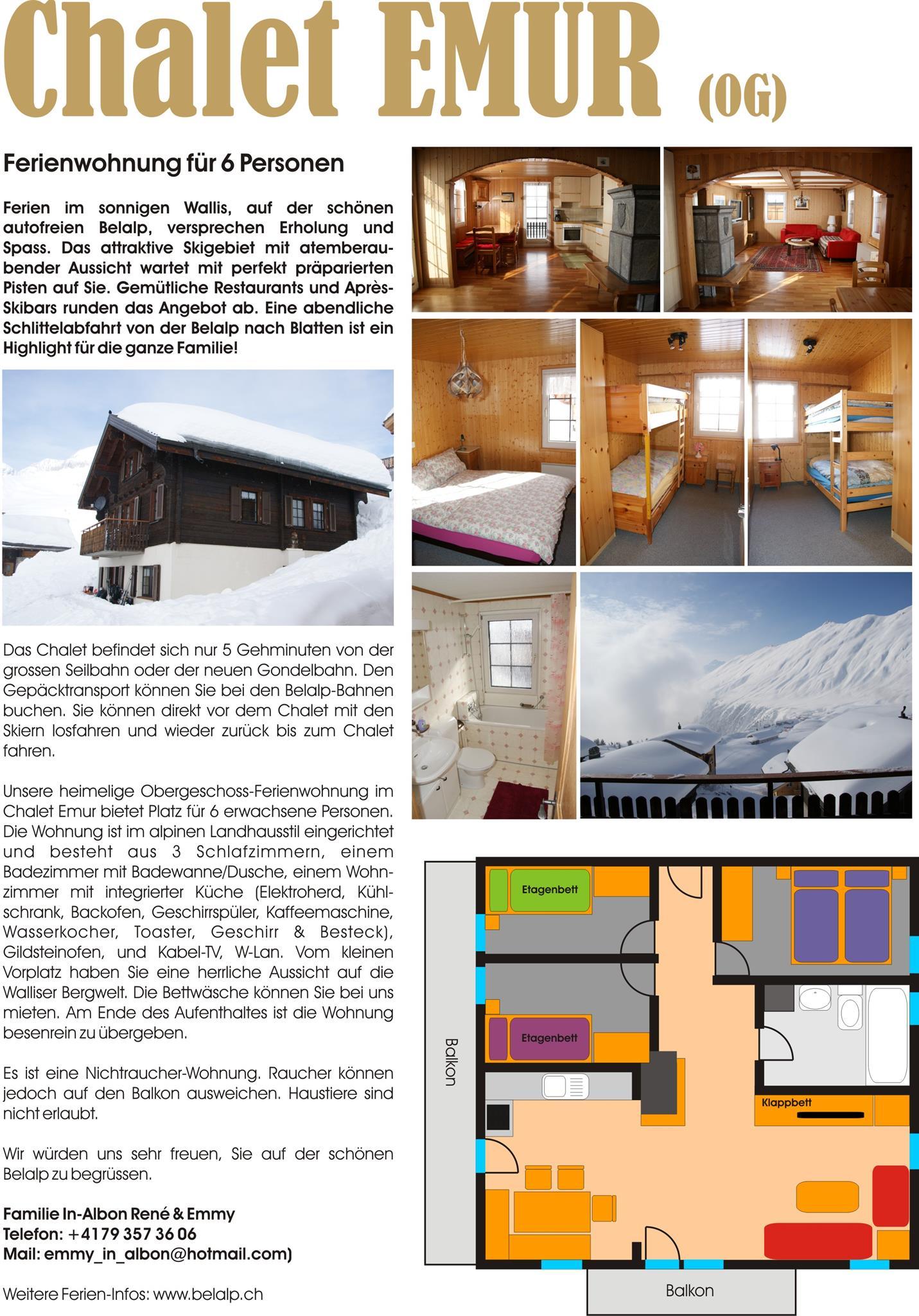 Möchten Sie mehr über die Ferienwohnung erfahren? Wir geben Ihnen gerne persönlich Auskunft unter Tel. 079 357 36 06