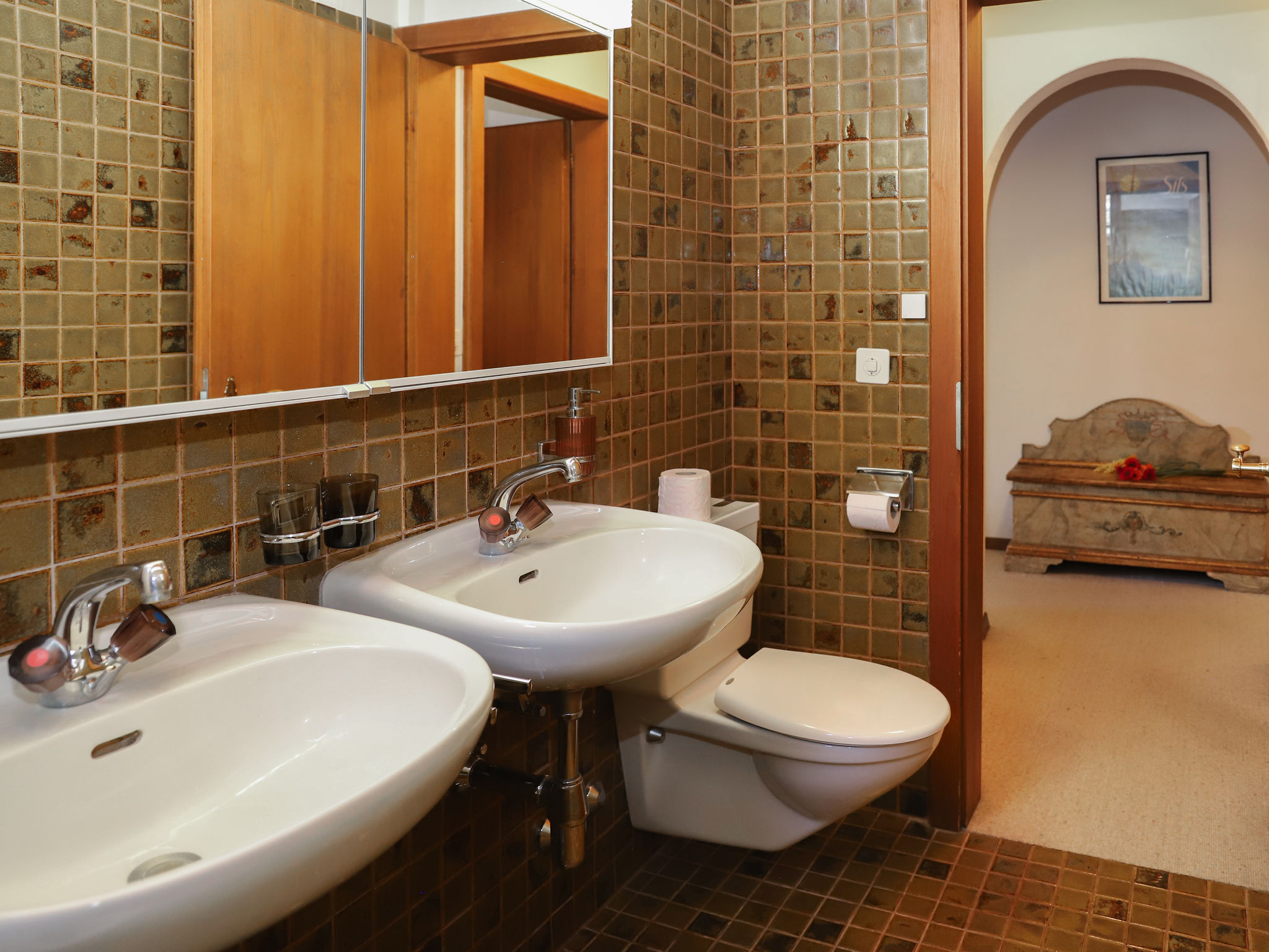 Sils Maria 10 km from St. Moritz: Apartment house "Chesa Prasüra". On the outskirts, in a quiet position, 1.5 km from the lake. In the house: storage room for skis, central heating system, washing machine, tumble dryer (for shared use). Communal covered parking. Grocery 100 m, restaurant 500 m, bus stop "Sils Maria, Seglias" 300 m, indoor swimming pool 1 km, lake Silser See 1.5 km. Golf course (18 hole) 17 km, surf school 7 km, tennis 1.2 km, indoor tennis centre 1.2 km, minigolf 1.2 km, riding stable 9 km, walking paths from the house 100 m, cycle lane 300 m, cable car 900 m, ski lift 900 m, ski rental 300 m, ski bus stop 300 m, ski school 800 m, children's ski school 700 m, sled run 1.2 km, cross country ski track 100 m, ice rink 700 m, children's playground 700 m. Nearby attractions: Nietzsche Haus 700 m, Robbi Museum 1 km, Segantini Museum in St. Moritz 10 km. Well-known ski regions can easily be reached: Furtschellas - Corvatsch 900 m, Corviglia 10 km, Diavolezza - Lagalb 30 km. Well-known lakes can easily be reached: Silser See 1.5 km, Silvaplaner See 1.5 km, St. Moritzer See 10 km. Hiking paths: Val Fex & Furtschellas, Via Engiadina 1 km, Silser & Silvaplaner See 1.5 km. Please note: no lift. Ski bus (free of charge). Free ski bus service to the ski region Furtschellas.