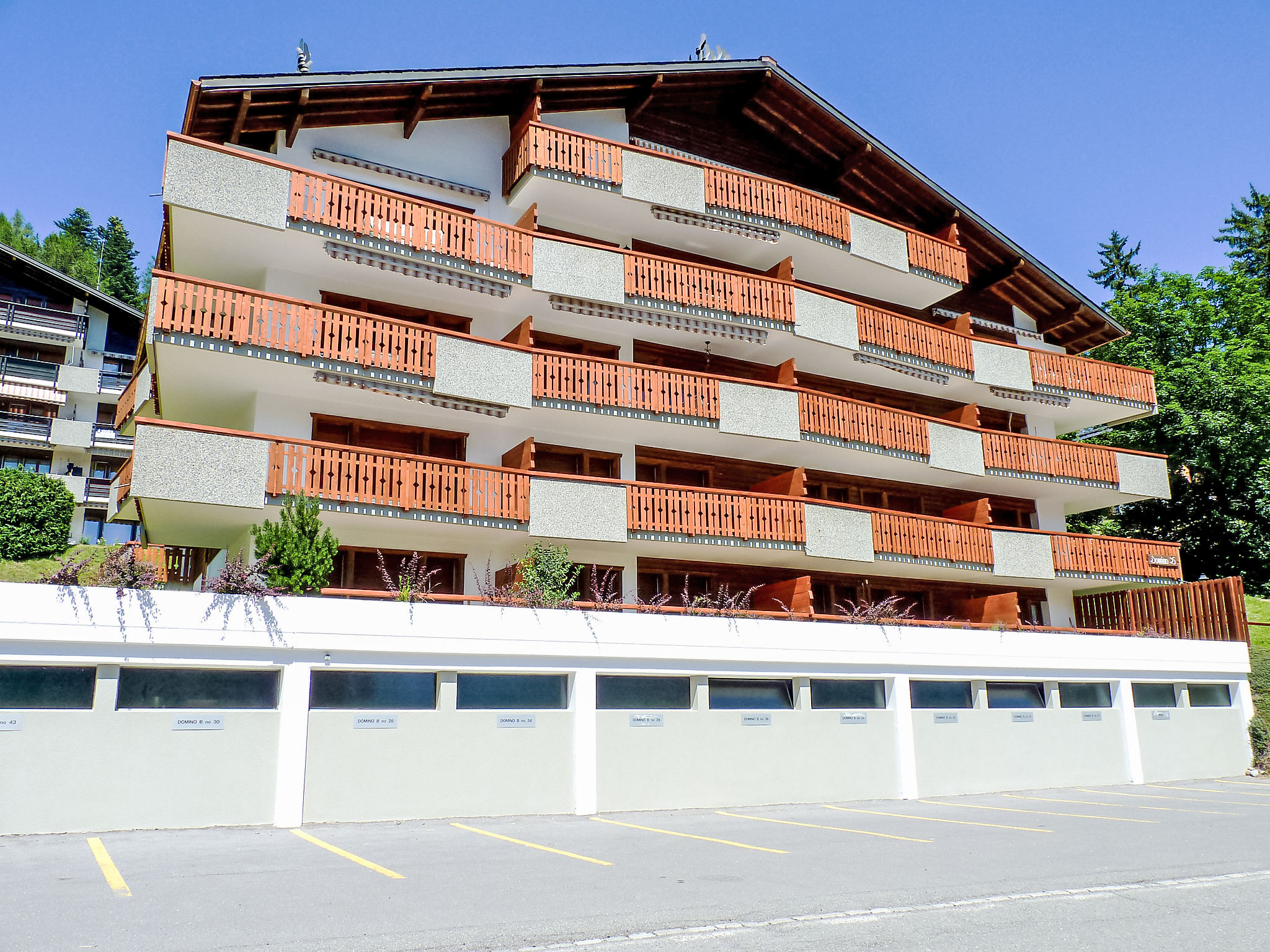 Cosy apartment house "Domino B". Above Ovronnaz, in the district of Tourbillon, 1.4 km from the skiing area, on a main road, south-west facing position. For shared use: children's playground. In the house: lift, central heating system, washing machine (for shared use, extra). Motor access to the house. Roofed, parking. Grocery 1 km, restaurant 50 m, bus stop "Chevalley" 50 m, thermal baths 1.8 km. Tennis, ski bus stop 50 m, cross country ski track 1 km. Please note: Additional accommodations can be booked.