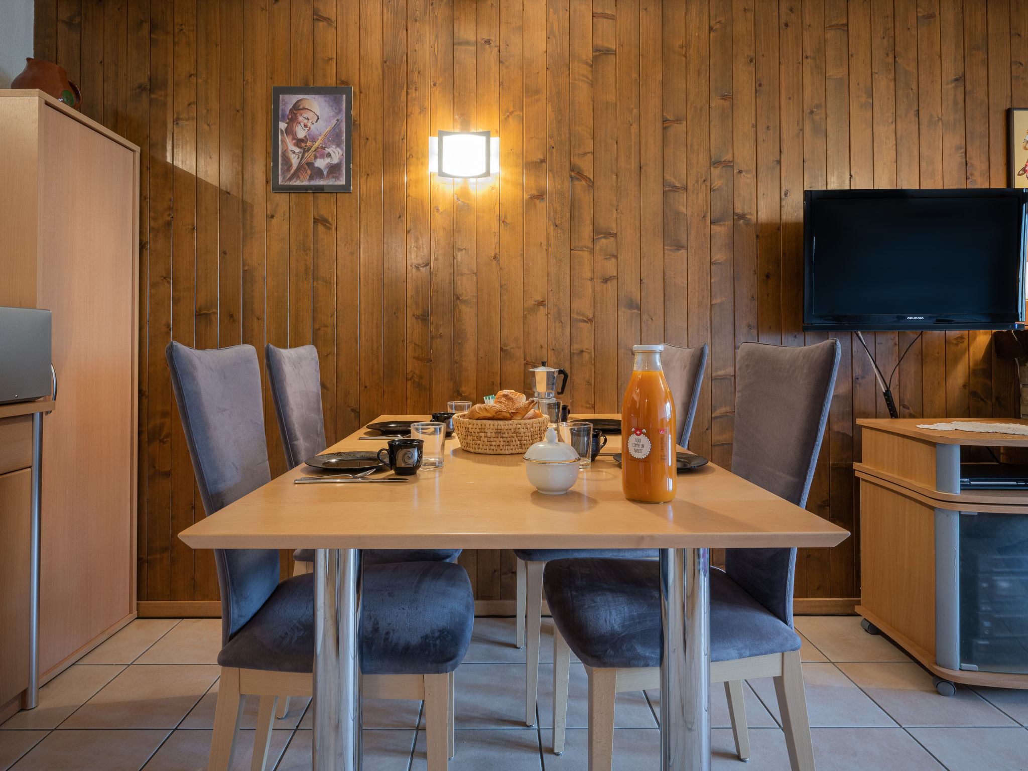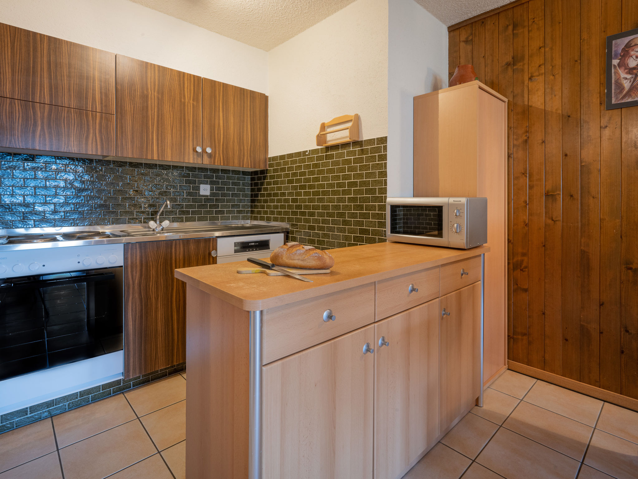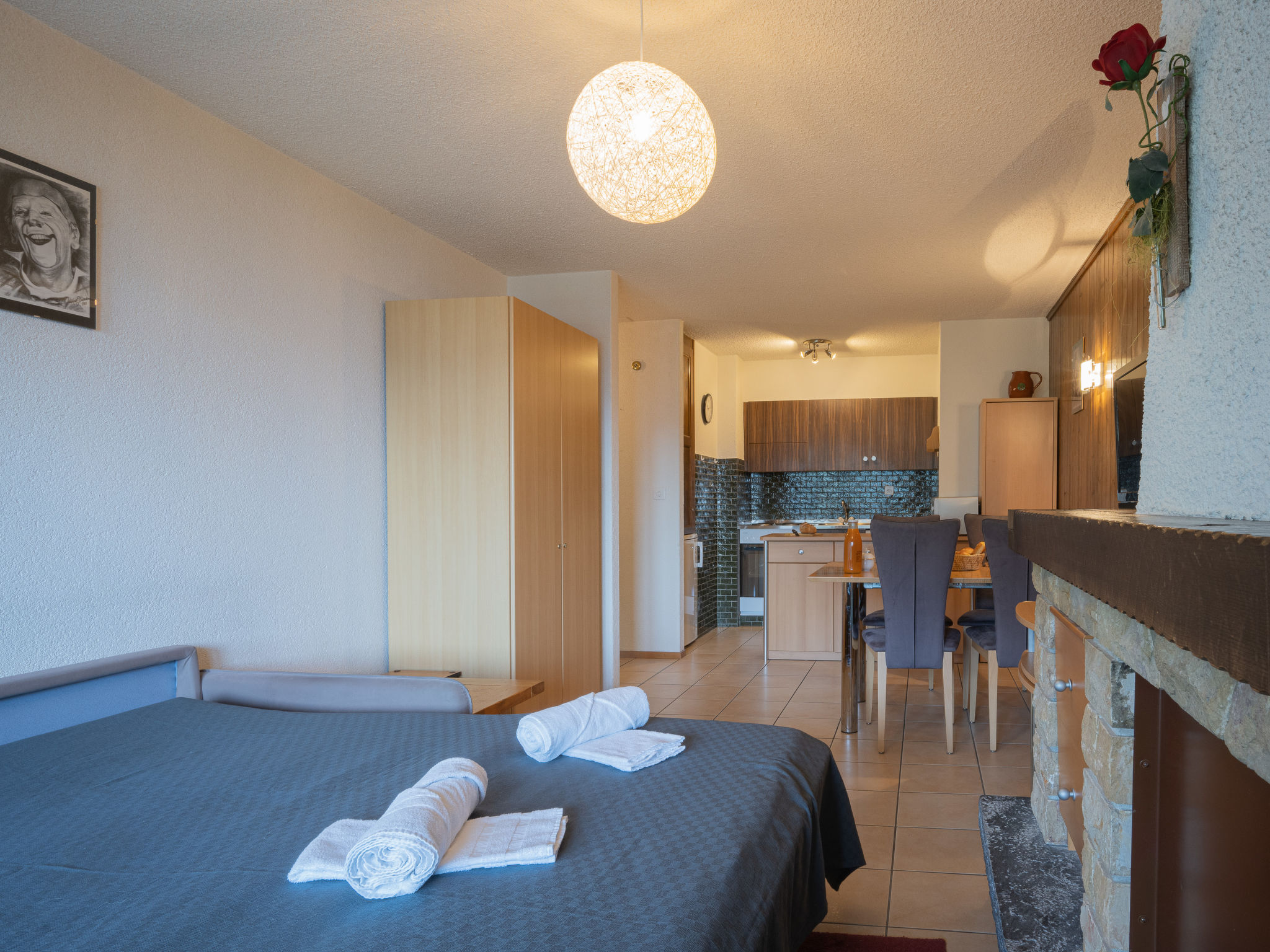 "Domino B 48", 2-room apartment 40 m2 on 3rd floor, south-east facing position. Comfortable furnishings: living/dining room with 1 double sofabed (1 x 140 cm, length 190 cm), dining table, cable TV, video and hi-fi system. 1 room with 1 french bed (160 cm, length 190 cm). Kitchenette (4 hot plates, oven, dishwasher, electric coffee machine, Capsules for coffee machine (Dolce Gusto) extra). Bath/WC. Balcony 11 m2. Terrace furniture, deck chairs (2). Very beautiful view of the mountains and the valley. Facilities: baby cot for up to 3 year olds (extra). Internet (WiFi). Garage space n 48. Please note: non-smokers only. Maximum 1 small pet/ dog allowed.