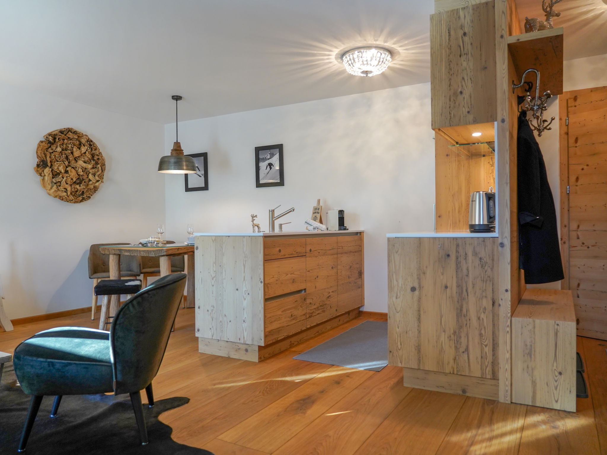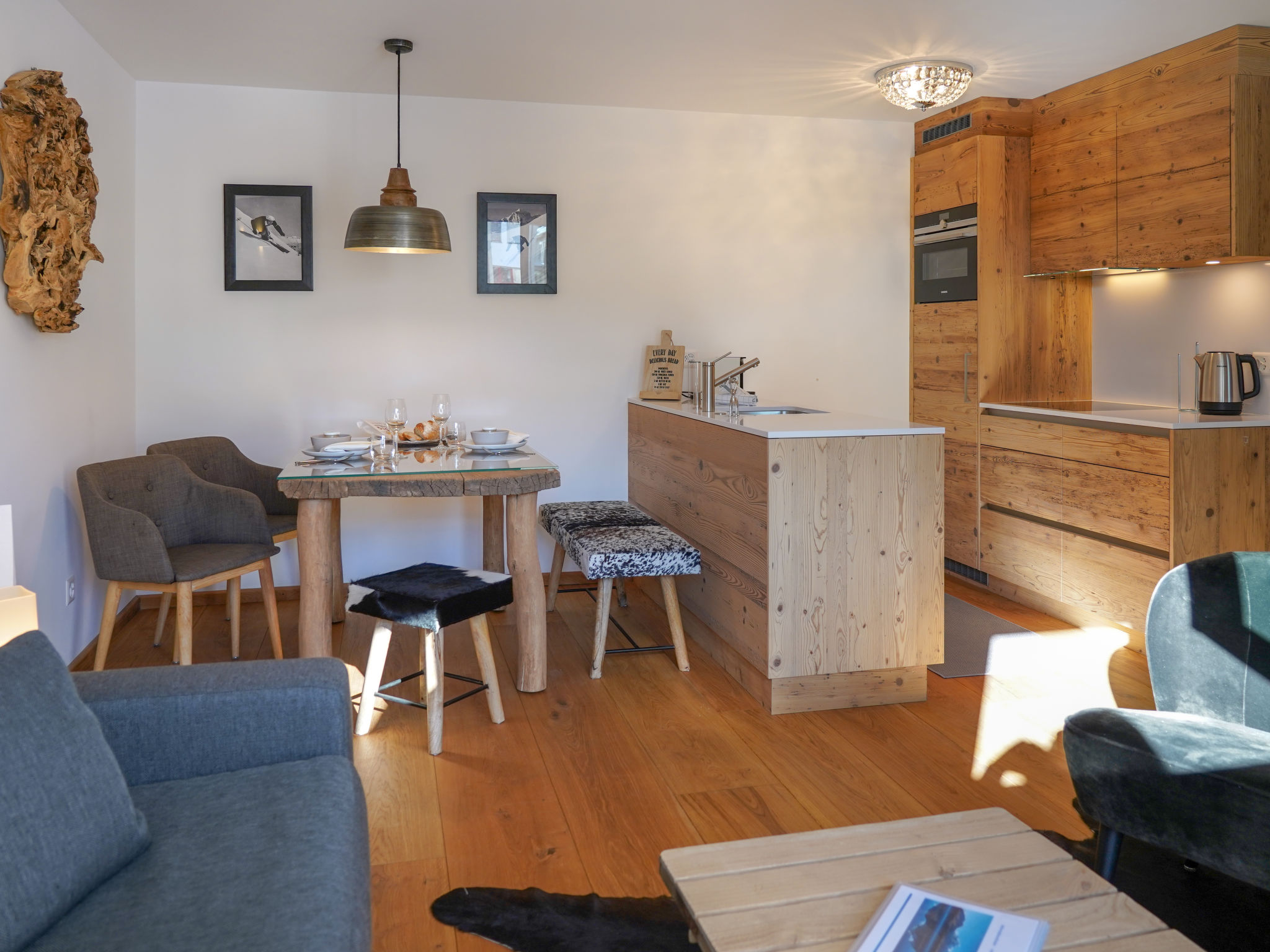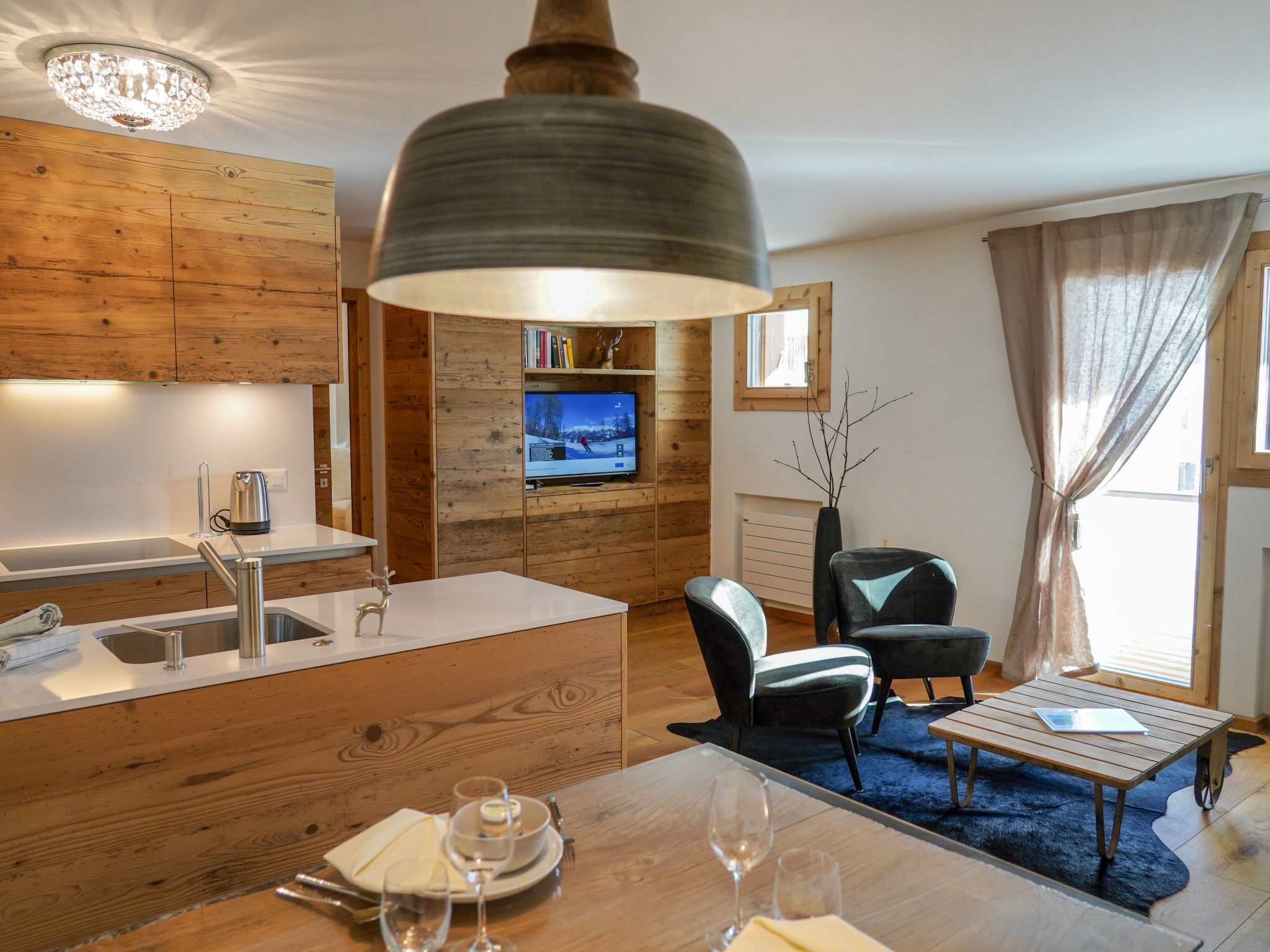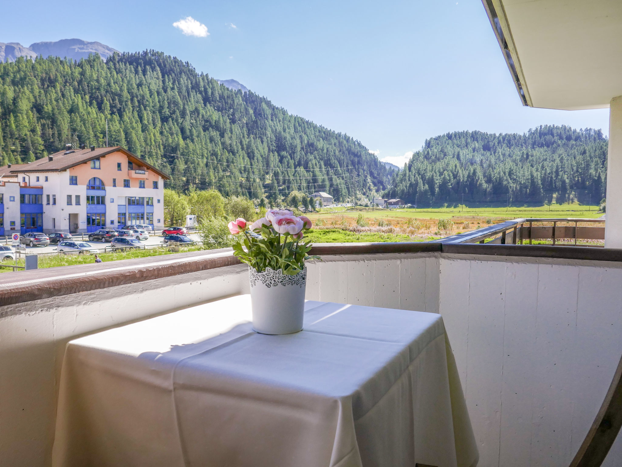"Chesa Palüdin 5 - Celerina", 2-room apartment 50 m2 on 1st floor. Bright, fully renovated in 2019, modern and tasteful furnishings: open living/dining room with dining table and TV (flat screen). Exit to the balcony. 1 double bedroom with 1 french bed (1 x 160 cm, length 200 cm). Small, open kitchen (oven, dishwasher, 4 induction hot plates, toaster, kettle, microwave, electric coffee machine, Capsules for coffee machine (Nespresso) extra, steamer, raclette grill). Shower/WC. Heating. Wooden floors. Balcony 9 m2. Balcony furniture. Very beautiful view of the mountains and the countryside. Facilities: iron, hair dryer. Internet (WiFi, free). Garage space n 5 (1 car), height 195 cm, width 210 cm. Please note: fridge without freezer, non-smokers only, non-smoking house. Maximum 1 pet/ dog allowed. No lift.