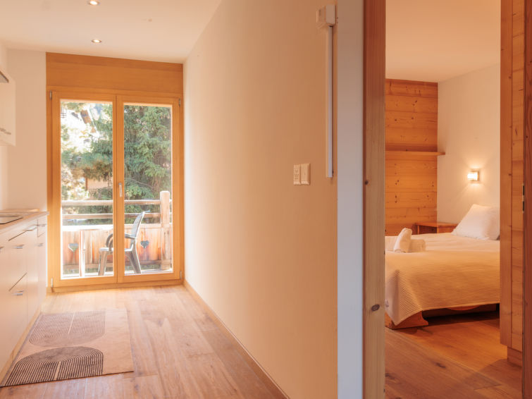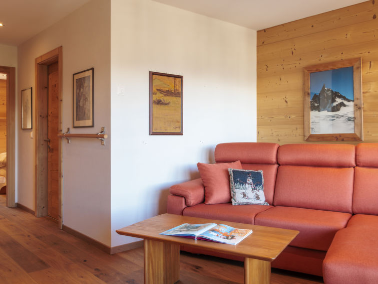 "Ferme de Sandra A31", 2-room apartment on 3rd floor, north facing position. Bright, comfortable and beautiful furnishings: living/dining room with 1 double sofabed and cable TV. Exit to the balcony, north facing position. 1 room with 1 double bed. Exit to the balcony, south facing position. Open kitchen (oven, dishwasher, 4 ceramic glass hob hotplates, toaster, kettle, electric coffee machine). Exit to the balcony, south facing position. Shower/WC, double hand-basin. Underfloor heating. Balcony, north facing position balcony, south facing position. Balcony furniture. Very beautiful view of the mountains. Facilities: hair dryer. Internet (WiFi, free). Parking space n 7 (1 car). Please note: non-smokers only. Instead of an enclosed bedroom, some sleeping areas are located in an open-plan area (gallery, alcove, etc.).