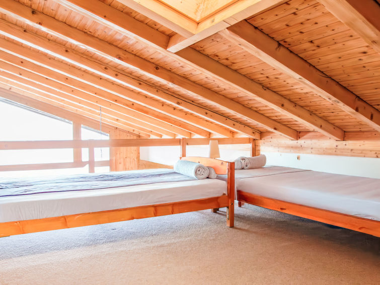 "Bietschorn 22", 3-room apartment 100 m2 on 2 levels on 4th floor. Beautiful furnishings: living/dining room with open-hearth fireplace (only for decoration), cable TV. Exit to the balcony, north facing position. 1 room with 1 french bed (180 cm, length 200 cm). Exit to the terrace, south facing position. Kitchen (oven, dishwasher, 4 induction hot plates, toaster, kettle, microwave, electric coffee machine, Capsules for coffee machine (Nespresso) extra, raclette grill, fondue Set (chinoise, cheese)). Bath/shower/WC. Top floor: gallery with sloping ceilings with rooflight with 2 beds (90 cm, length 190 cm). 1 room with sloping ceilings with 2 beds (90 cm, length 190 cm). Bath/WC. Balcony, terrace. Terrace furniture. Very beautiful panoramic view of the mountains and the valley. Facilities: hair dryer. Internet (WiFi, free). Parking space n 22 (roofed), height 200 cm. Please note: non-smokers only. Instead of an enclosed bedroom, some sleeping areas are located in an open-plan area (gallery, alcove, etc.).