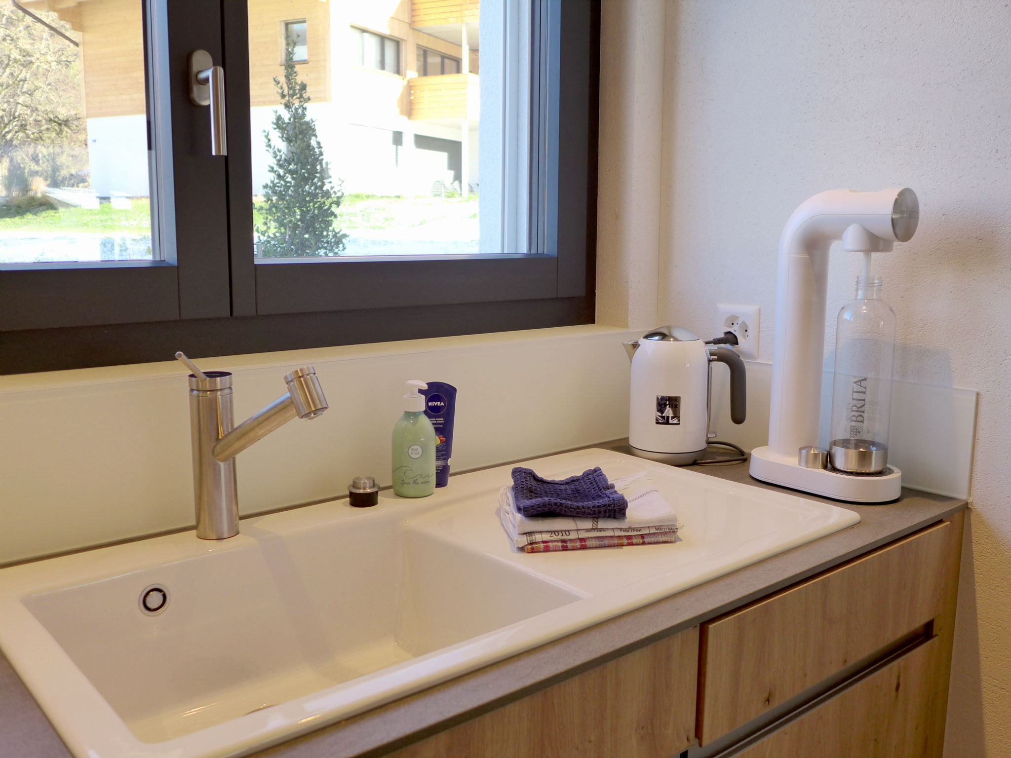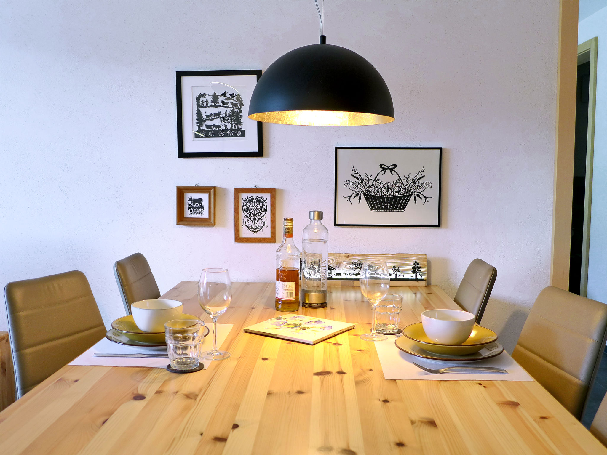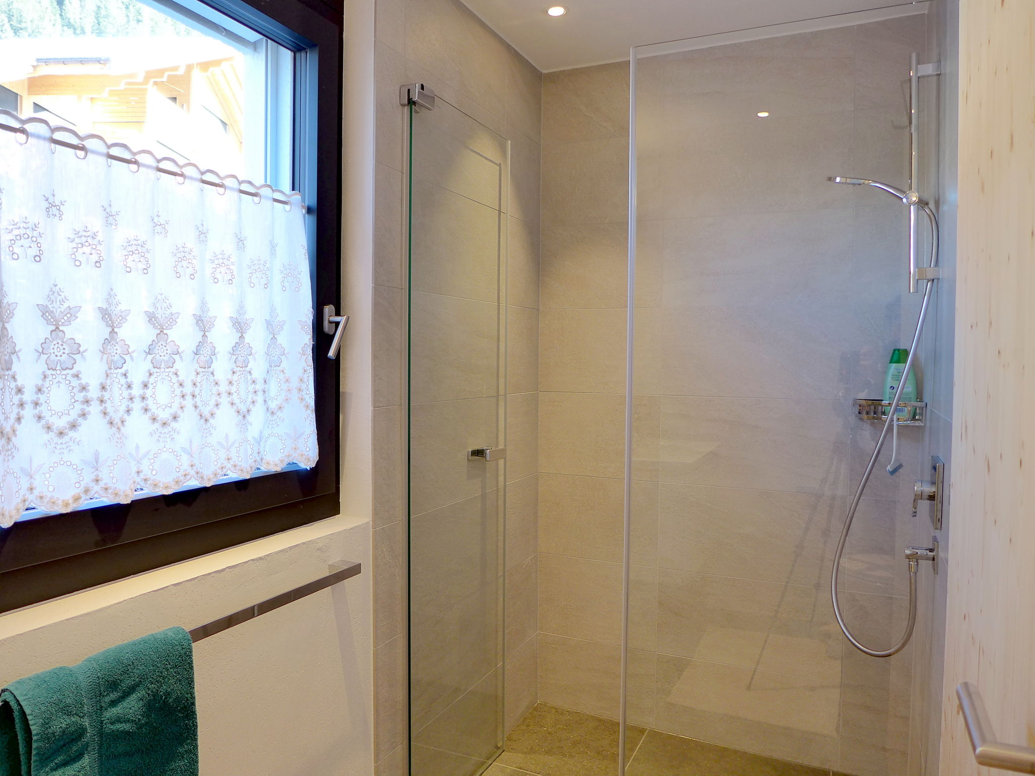 "Greenview", 2-room apartment 62 m2, on the ground floor, south-west facing position. Spacious and bright, very comfortable and cosy furnishings: open living/sleeping room with 1 sofabed, dining table and cable TV. Exit to the terrace. 1 room with 1 double bed (2 x 90 cm, length 200 cm), shower/WC. Exit to the terrace. Open kitchen (oven, dishwasher, 4 induction hot plates, toaster, kettle, microwave, electric coffee machine, Capsules for coffee machine (Nespresso) extra, raclette grill, fondue Set (cheese)). Shower/WC. Solar energy heating, underfloor heating. Solar power. Large terrace. Terrace furniture. Marvellous view of the mountains and the countryside. Facilities: Internet (WiFi, free). Parking (roofed, 1 car). E-charging station. Please note: non-smokers only. 1 small pet/ dog allowed.