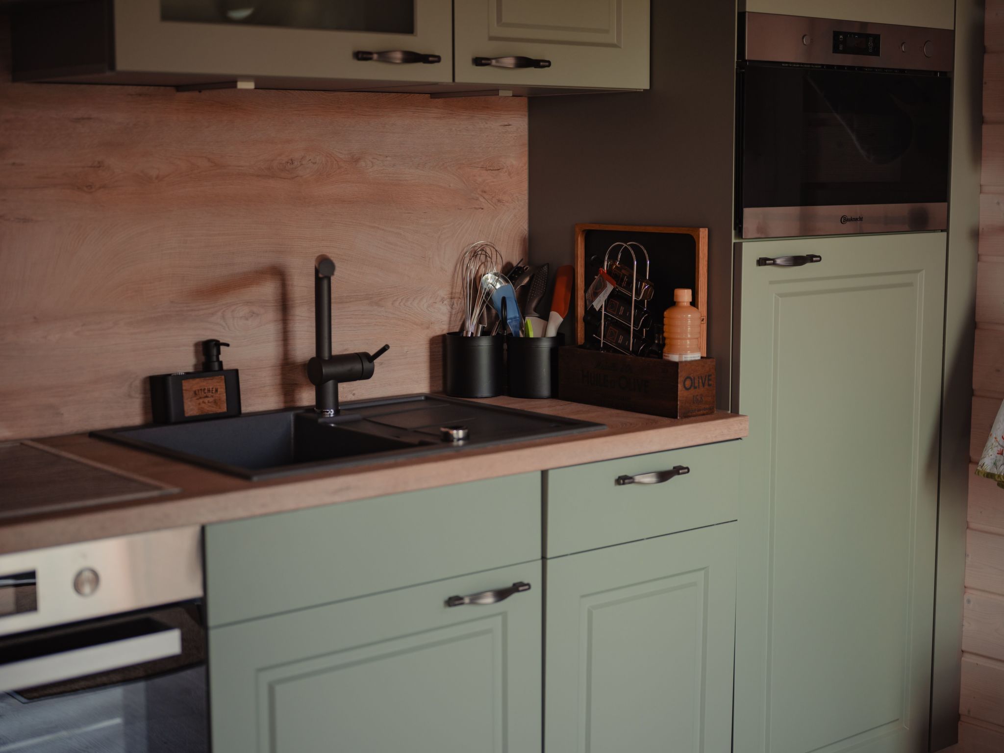 The fully equipped kitchen with oven, ceramic hob, microwave, dishwasher and large fridge (incl. freezer compartment) leaves nothing to be desired. Basic ingredients such as spices, oil, flour and sugar are provided.