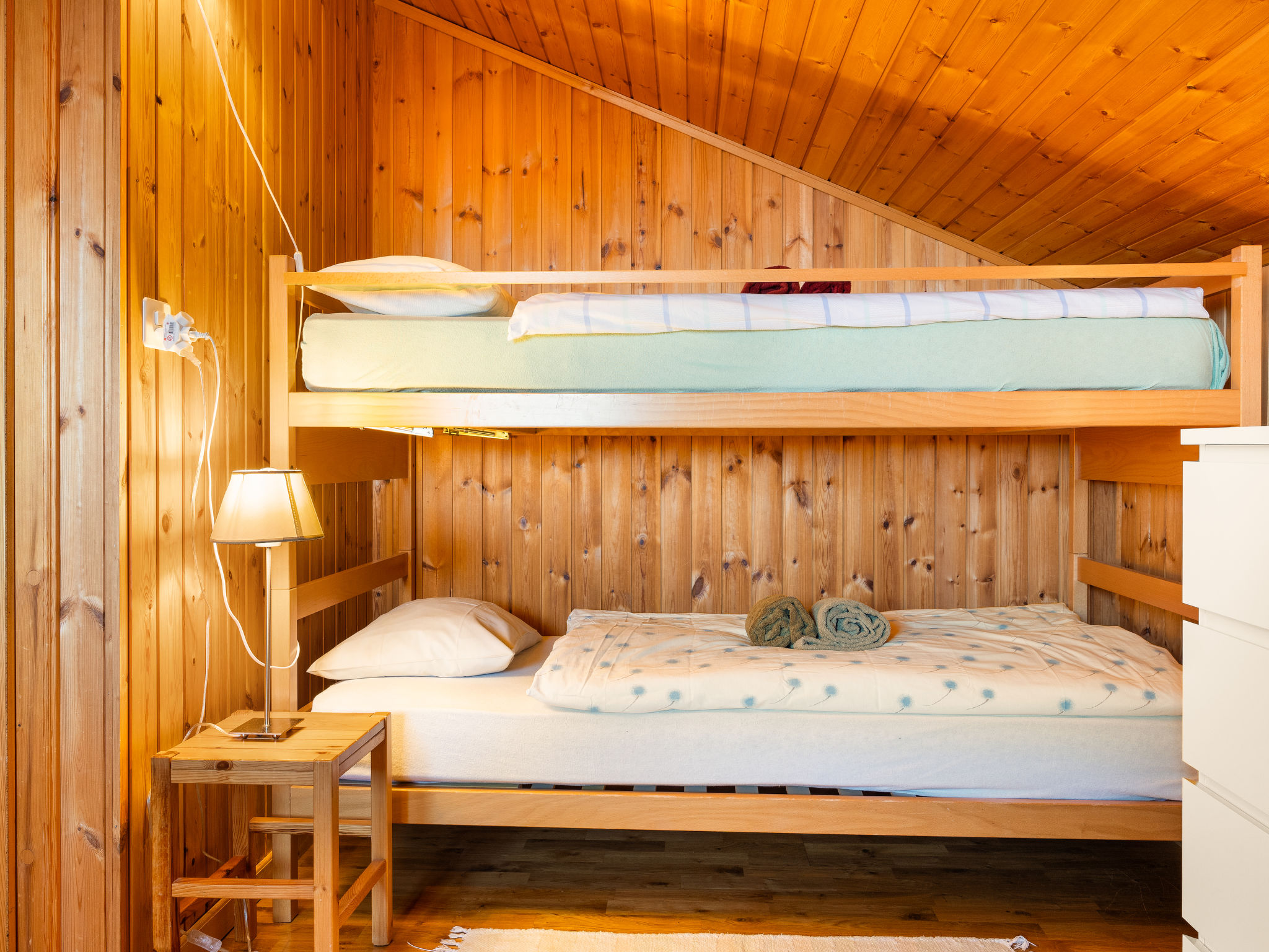 "Chalet Seravalle", 4-room chalet 137 m2 on 2 levels. Object suitable for 5 adults + 3 children. Practical and cosy furnishings: living/dining room with open-hearth fireplace, TV and boiler. Exit to the terrace. Open kitchen (4 hot plates, oven, dishwasher, toaster, kettle, electric coffee machine, Capsules for coffee machine (Nespresso) extra, raclette grill, fondue Set (cheese)). Shower/WC. Oil heating. Heating not available in all rooms. Upper floor: 1 room with 1 double bed (160 cm, length 200 cm). Exit to the balcony. 1 room with 1 double bed (150 cm, length 200 cm). Exit to the balcony. 1 room with 1 bed (90 cm, length 200 cm). 1 children's room with 1 bed (90 cm, length 200 cm), 1 x 2 bunk beds (90 cm, length 200 cm). Bathroom, sep. WC, double hand-basin. Balcony, terrace. Terrace furniture. Very beautiful view of the mountains. Facilities: hair dryer. Internet (WiFi, free). Parking (2 cars), garage at the house. Please note: non-smokers only.