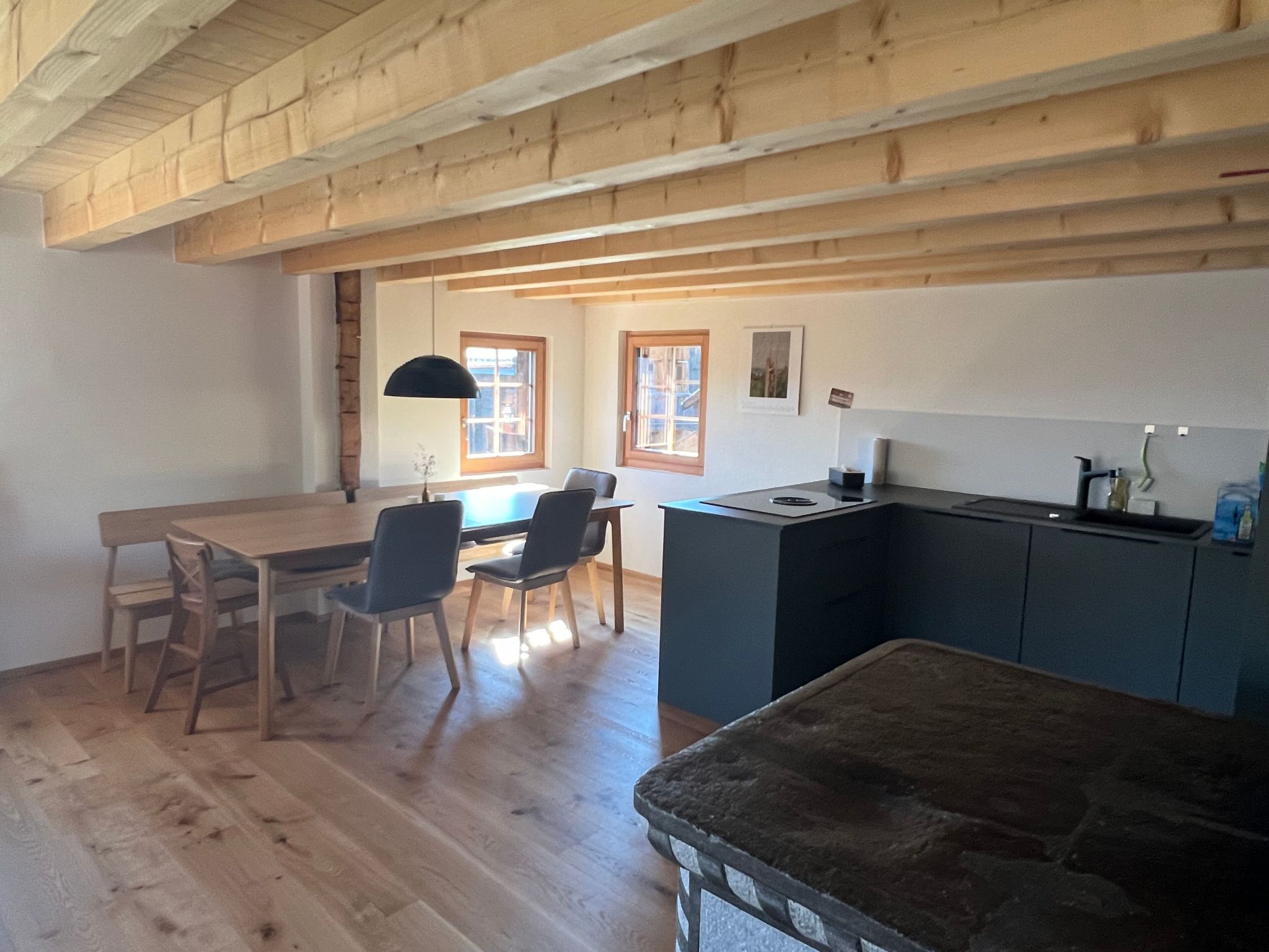 In the Steirufina flat you get the perfect Valais holiday experience, as the chalet is traditionally clad in a rustic dark wood style on the outside, yet bright, modern and stylishly restored on the inside.