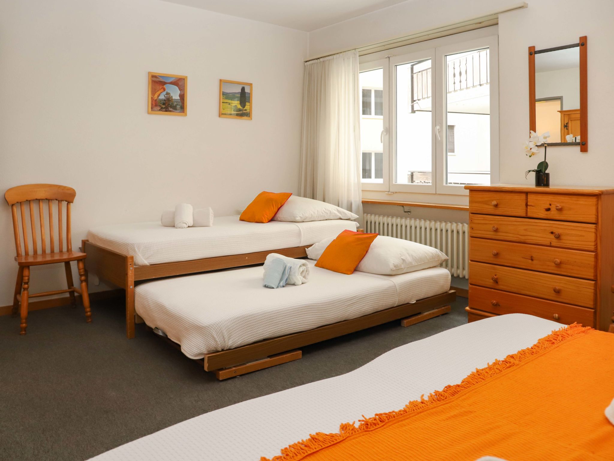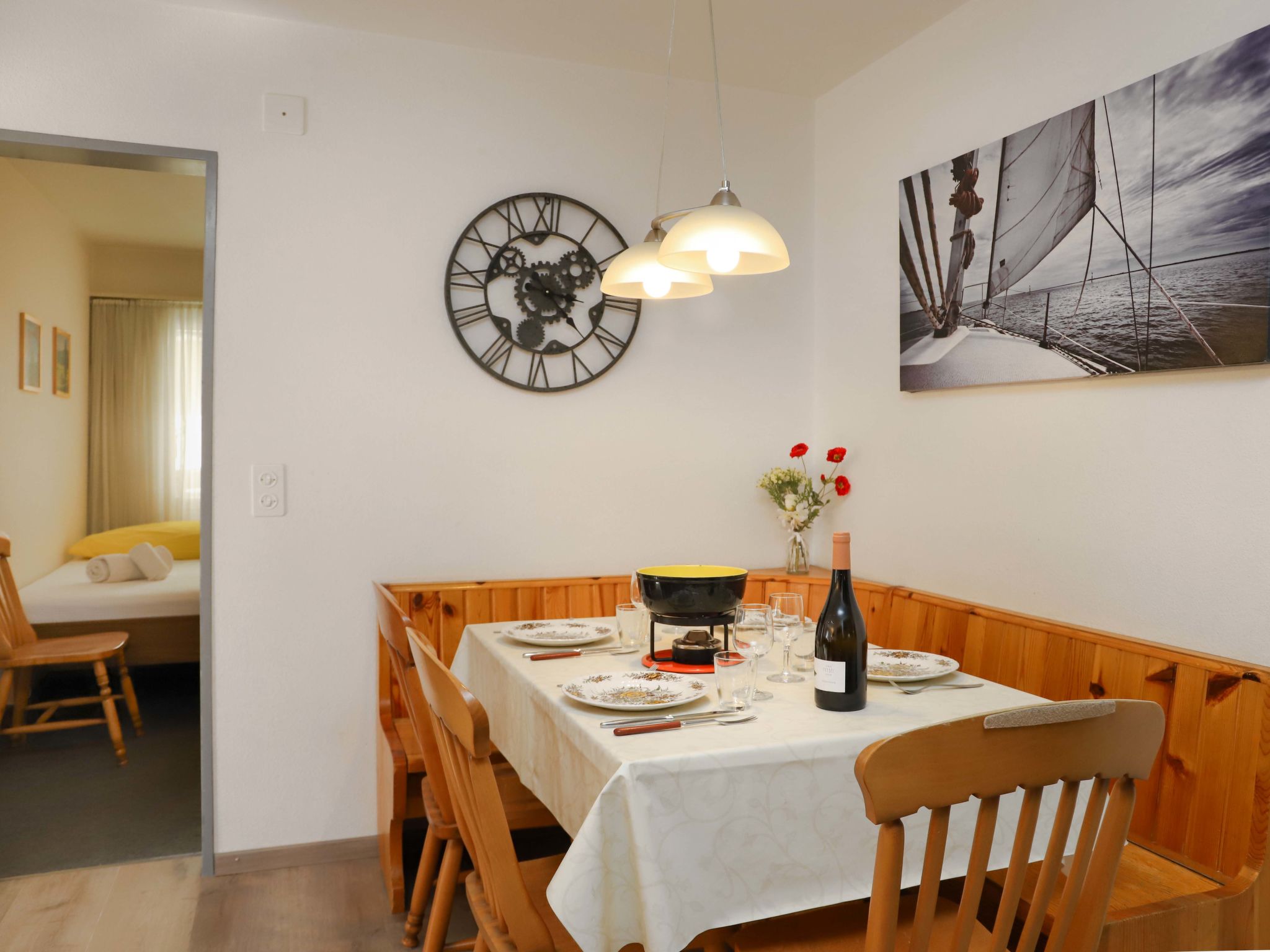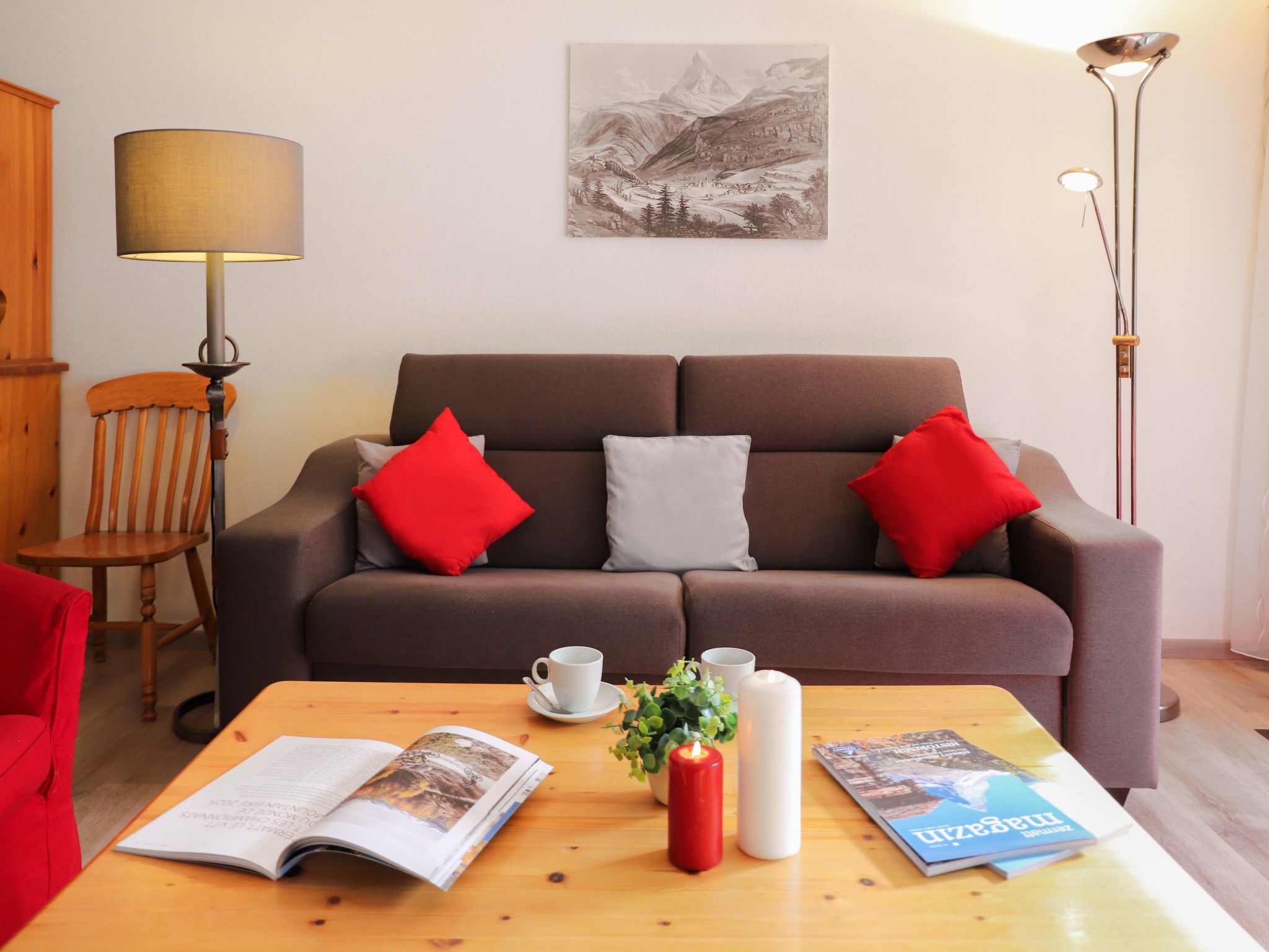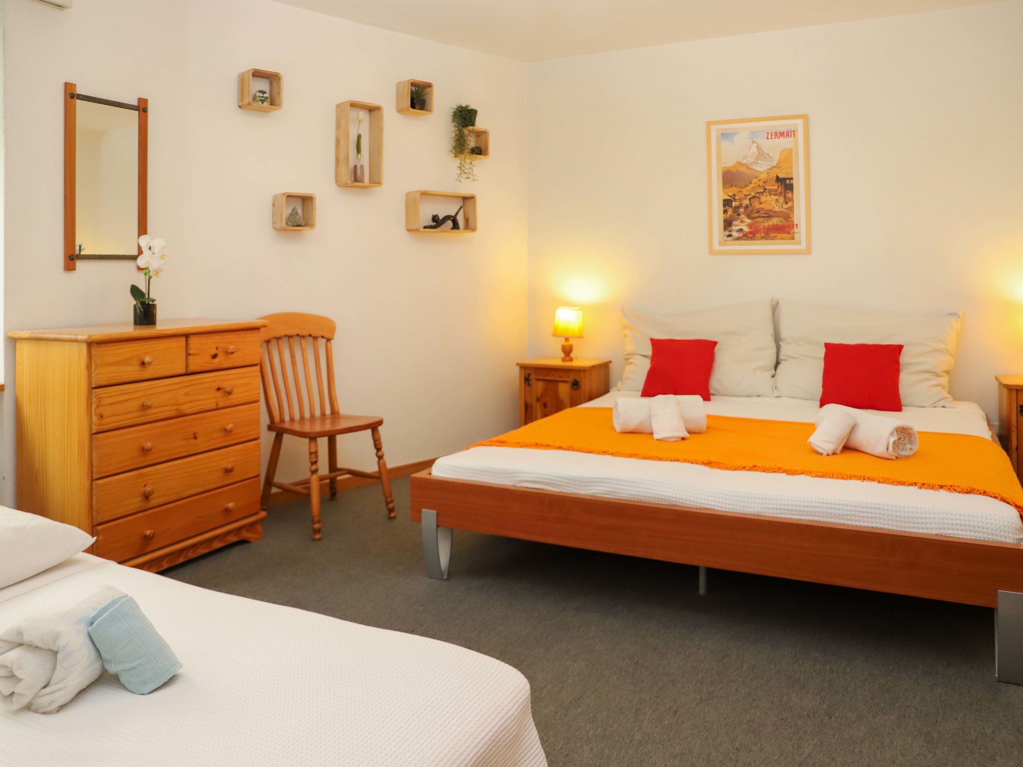 3-room apartment 83 m2, on the ground floor, south facing position. Renovated in 2015, comfortable and tasteful furnishings: open living/dining room with dining nook, TV and DVD. Exit to the balcony, south facing position and west facing position. 1 double bedroom with 1 double bed (2 x 90 cm, length 200 cm). 1 room with 1 bed (90 cm, length 200 cm), 1 double bed (2 x 90 cm, length 200 cm). Open kitchen (4 hot plates, oven, dishwasher, toaster, kettle, freezer, electric coffee machine, raclette grill, fondue Set (cheese)). Shower/WC. Balcony, south facing position and west facing position. View of the Matterhorn. Facilities: hair dryer. Internet (WiFi, free). Please note: non-smokers only. CH3920.28.3