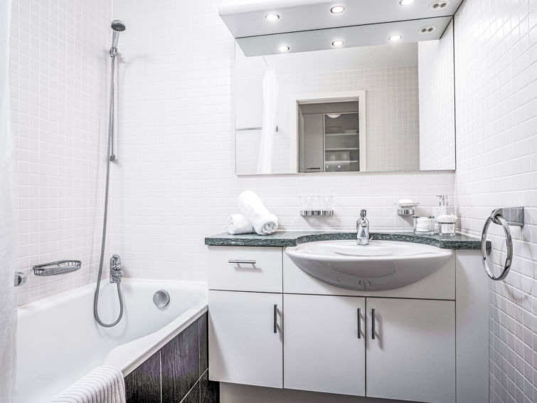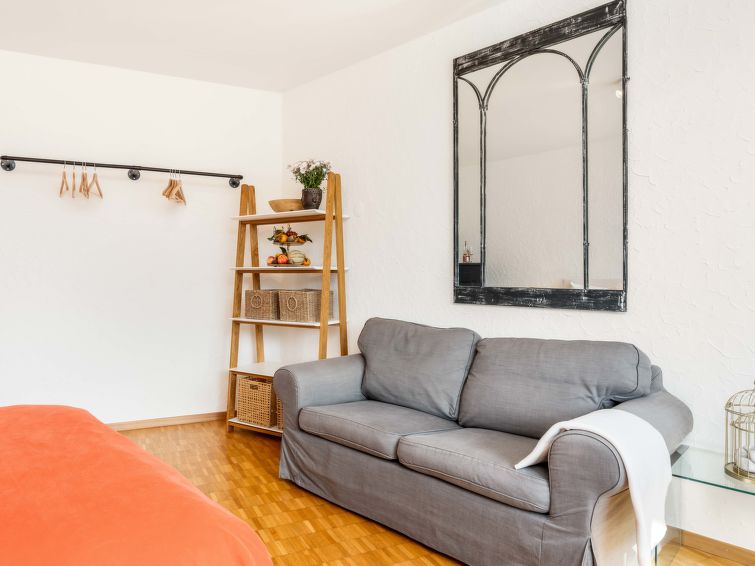"Double Room Modern", 1-room apartment 35 m2 on 2nd floor, south facing position. Renovated: living/dining room with 1 double bed (1 x 160 cm, length 200 cm), satellite TV and radio. Kitchenette (oven, electric coffee machine, Capsules for coffee machine (Nespresso) extra). Bath/WC. Oil heating. Balcony, south facing position. Marvellous view of the lake, the mountains and the resort. Facilities: Internet (WiFi, free). Please note: non-smokers only. Maximum 1 pet/ dog allowed. NL-00004955