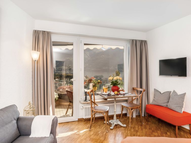 Ascona: Modern house "Palazzo Miralago", 4 storeys, built in 1960, renovated. 22 apartments in the property. Above Ascona 400 m from the centre of Ascona, in the district Lago Maggiore, in a quiet, sunny position on a slope, 400 m from the lake. In the house: reception, WiFi, lift, storage room for bicycles, central heating system, washing machine (extra), tumble dryer (for shared use, extra). Bread roll service possible. Parking (limited number of spaces, extra) on the premises, communal covered parking (extra). Parking space or garage only for small to medium-sized cars. Dimension: height 205 cm width 220 cm. Shop 400 m, grocery, supermarket 600 m, shopping centre 1.4 km, bakery, pedestrian zone 400 m, 10 minute walk to the centre, bus stop "Ascona Centro (Bus Nr. 1)" 400 m, railway station "SBB-CFF Locarno-Muralto" 4.7 km, sandy beach "Bagno Pubblico Ascona" 1.3 km, bathing lake "Lago Maggiore" 1.3 km, lake Lago Maggiore 500 m. Golf course (18 hole) 1 km, tennis 1 km. Nearby attractions: Madonana del Sasso, Orselina, Locarno-Ascona, Ronco sopra Ascona, Falconeria, Kamelienpark, Piazza Grande, Castelli di Bellinzona, Monte Verità, Ascona, Brissago Inseln. Well-known lakes can easily be reached: Lago Maggiore, Lago di Lugano, Lago di Como, Lago di Orta. Hiking paths: Monte Veritè, Ronco s. Ascona, Valle Maggia, VMonte Tamaro - Monte Lema, Monte Tamaro - Monte Lema. Please note: baby equipment on request (extra). Loading and unloading of baggage is possible at the holiday house. Additional accommodations can be booked. Property ref. CH6612.250.1-24 is situated on the same property. ATTENTION - limited number of garage spaces and limited number of outdoor parking spaces directly at the house - MUST reserve in advance.