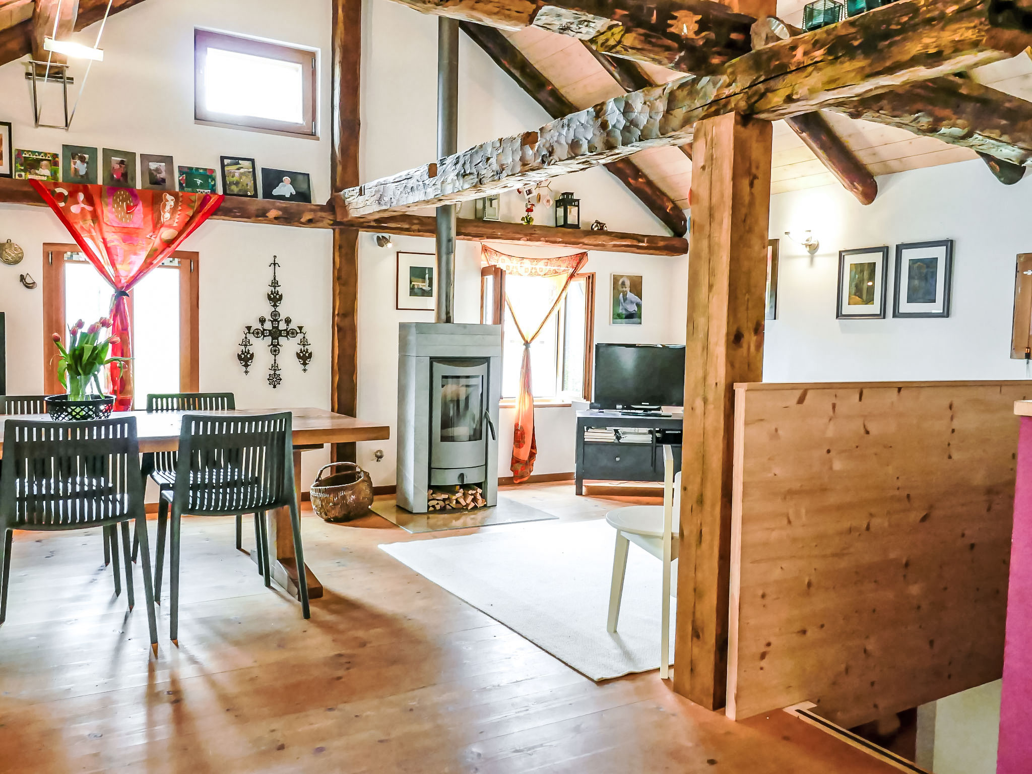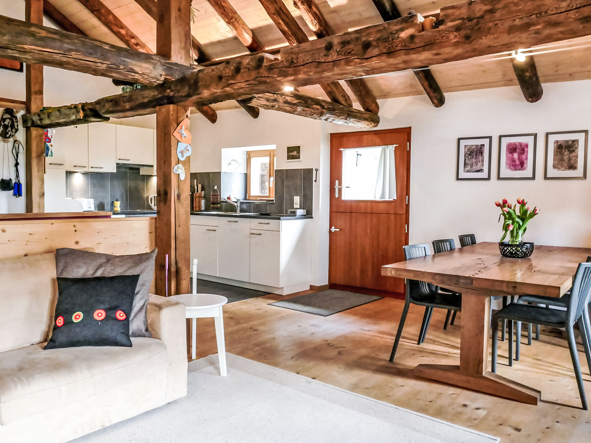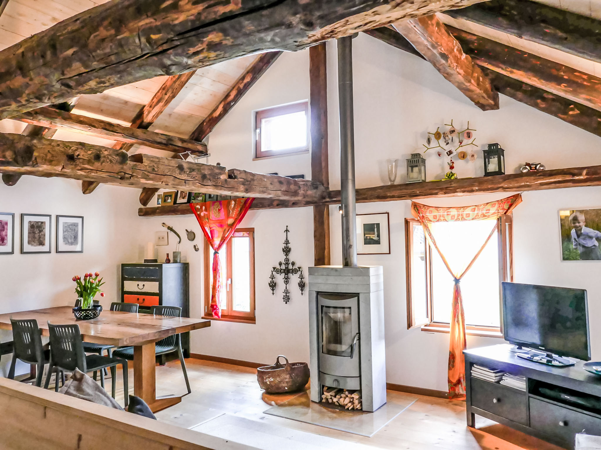 "Rustico 1787", 3-room house 60 m2 on 2 levels. Comfortable and cosy furnishings: open living/dining room with Scandinavian wood stove, TV, flat screen, radio and DVD collection available. Exit to the patio. Open kitchen (oven, dishwasher, 4 ceramic glass hob hotplates). Exit to the terrace. Shower/WC. On the lower ground floor: 1 children's room with 1 x 2 bunk beds (80 cm, length 180 cm). 1 double bedroom with 1 double bed (1 x 160 cm, length 200 cm). Garden 80 m2. Terrace furniture, barbecue, deck chairs (2). Very beautiful view of the mountains and the valley. Facilities: washing machine, children's high chair, baby cot for up to 2 year olds (extra), hair dryer, logs (free). Internet (WiFi, extra). Please note: non-smoking house. 1 small pet/ dog allowed. Fire extinguisher. WI-Fi on request, please note only 3G signal. NL-00009844