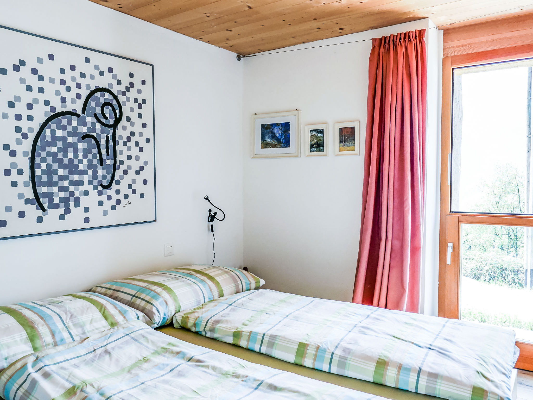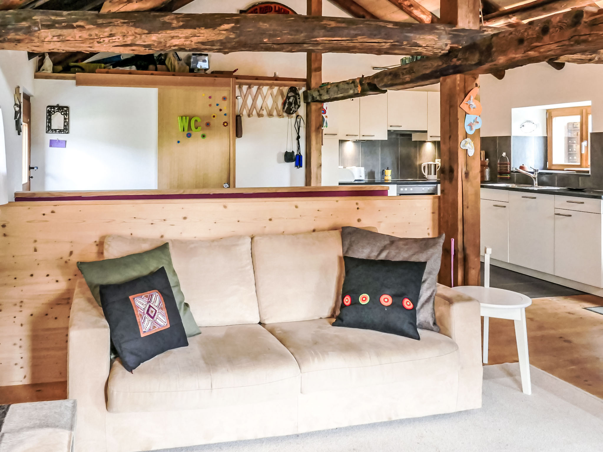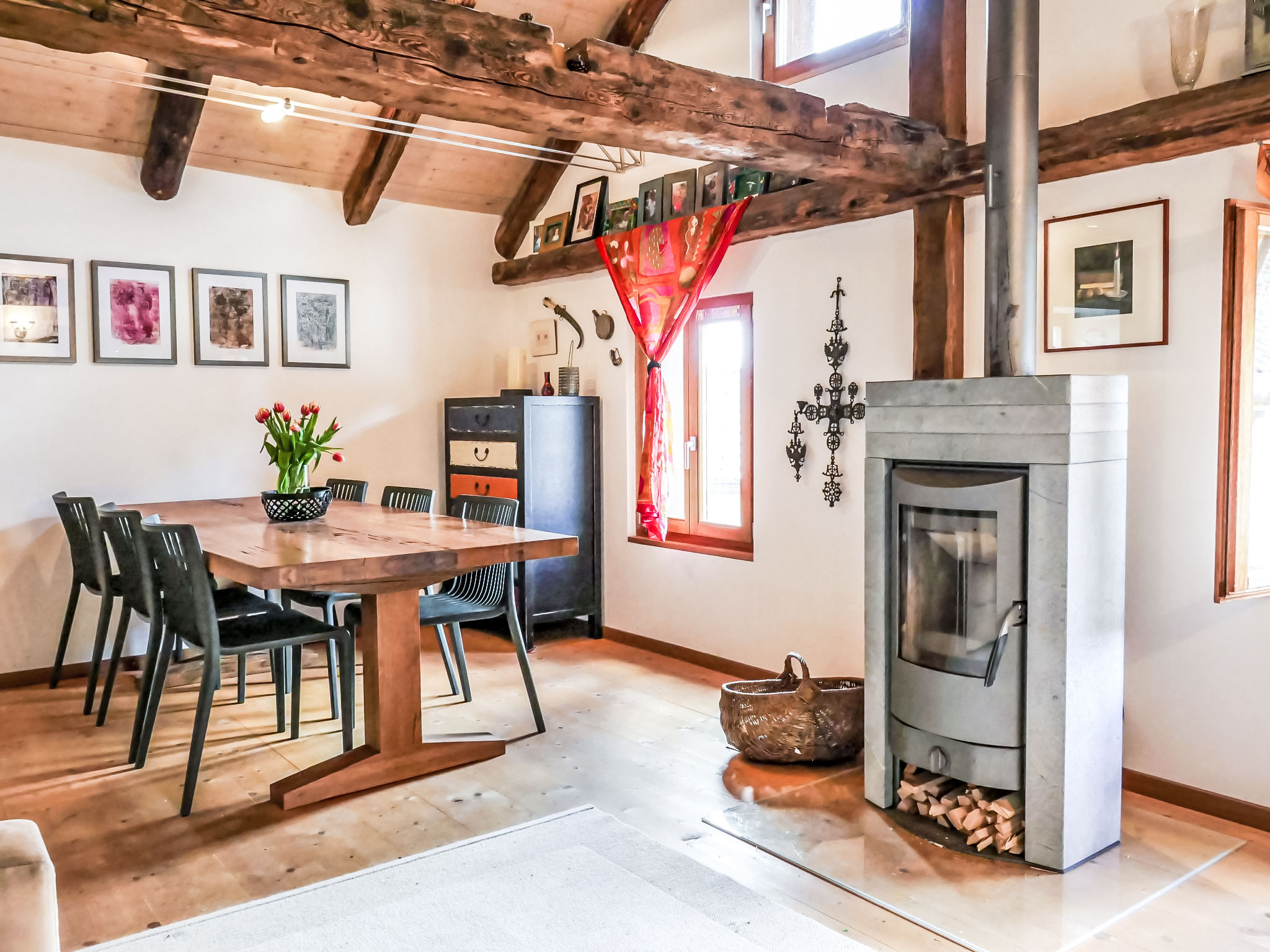 "Rustico 1787", 3-room house 60 m2 on 2 levels. Comfortable and cosy furnishings: open living/dining room with Scandinavian wood stove, TV, flat screen, radio and DVD collection available. Exit to the patio. Open kitchen (oven, dishwasher, 4 ceramic glass hob hotplates). Exit to the terrace. Shower/WC. On the lower ground floor: 1 children's room with 1 x 2 bunk beds (80 cm, length 180 cm). 1 double bedroom with 1 double bed (1 x 160 cm, length 200 cm). Garden 80 m2. Terrace furniture, barbecue, deck chairs (2). Very beautiful view of the mountains and the valley. Facilities: washing machine, children's high chair, baby cot for up to 2 year olds (extra), hair dryer, logs (free). Internet (WiFi, extra). Please note: non-smoking house. 1 small pet/ dog allowed. Fire extinguisher. WI-Fi on request, please note only 3G signal. NL-00009844