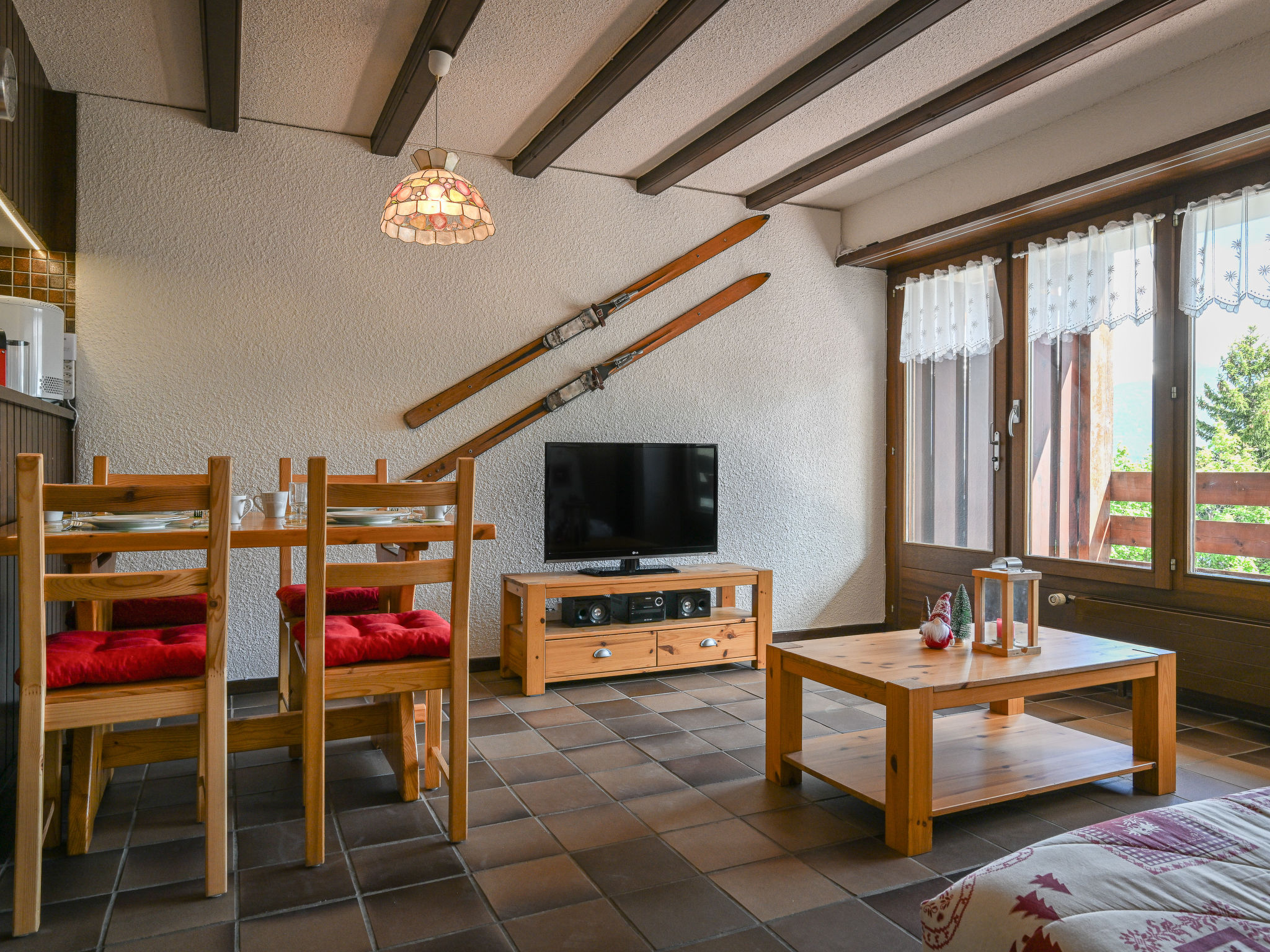 "Centaure B 103", 2-room apartment 42 m2 on 3rd floor, south-east facing position. Practical and comfortable furnishings: living/dining room with 1 double sofabed (190 cm, length 200 cm), cable TV (flat screen), radio. Exit to the balcony, south-east facing position. 1 room with 1 french bed (160 cm, length 200 cm). Exit to the balcony, south-east facing position. Kitchenette (4 hot plates, oven, dishwasher, 4 ceramic glass hob hotplates, kettle, microwave, electric coffee machine, Capsules for coffee machine (Nespresso) extra, raclette grill, fondue Set (cheese)) with dining table. Bath/WC. Balcony 12 m2, south-east facing position. Balcony furniture. Very beautiful view of the mountains and the valley. Facilities: iron, hair dryer. Internet (WiFi, free). Garage space n 103, height 180 cm, width 320 cm. Please note: non-smokers only. Maximum 1 pet/ dog allowed.
