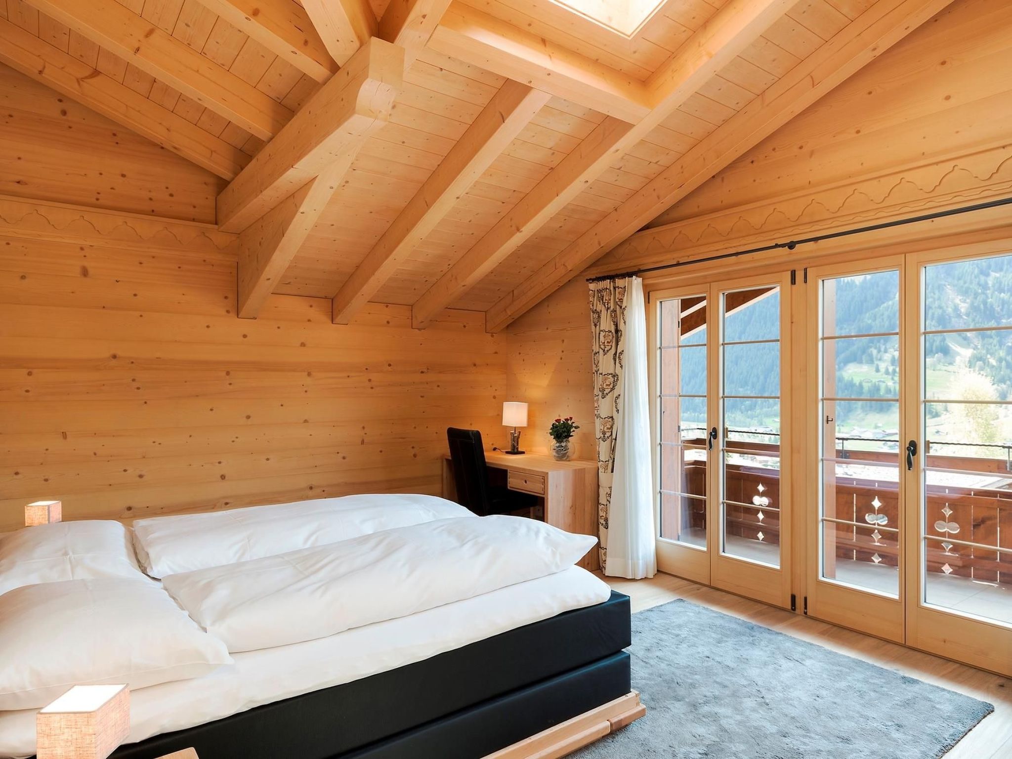 Experience a relaxing holiday with views of the surrounding mountains in this generously proportioned 4.5-room penthouse flat (175m2) with gallery and three balconies. The flat has three double bedrooms with en suite bathrooms. There is space for a further two guests on the gallery, including a sofa bed and en suite bathroom. The centrepiece of the modern flat is the open-plan kitchen with adjoining, bright and cosy living and dining area with fireplace.