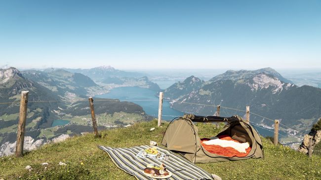 Turn your Alpine dreams into reality at 1,922 metres above sea level. As evening falls and the day visitors start heading for home, peace descends on the Fronalpstock. The silence is almost otherworldly and creates a sense of complete freedom. While Lake Lucerne winds its way around the mountains like a fjord, spectacular sunsets create breathtaking backdrops. As total darkness unfolds, the clear night sky becomes even more spectacular. The millions of stars making up the Milky Way almost seem within touching distance of the panorama tent and the fresh scent of the mountain meadows ensures a sound night’s sleep.