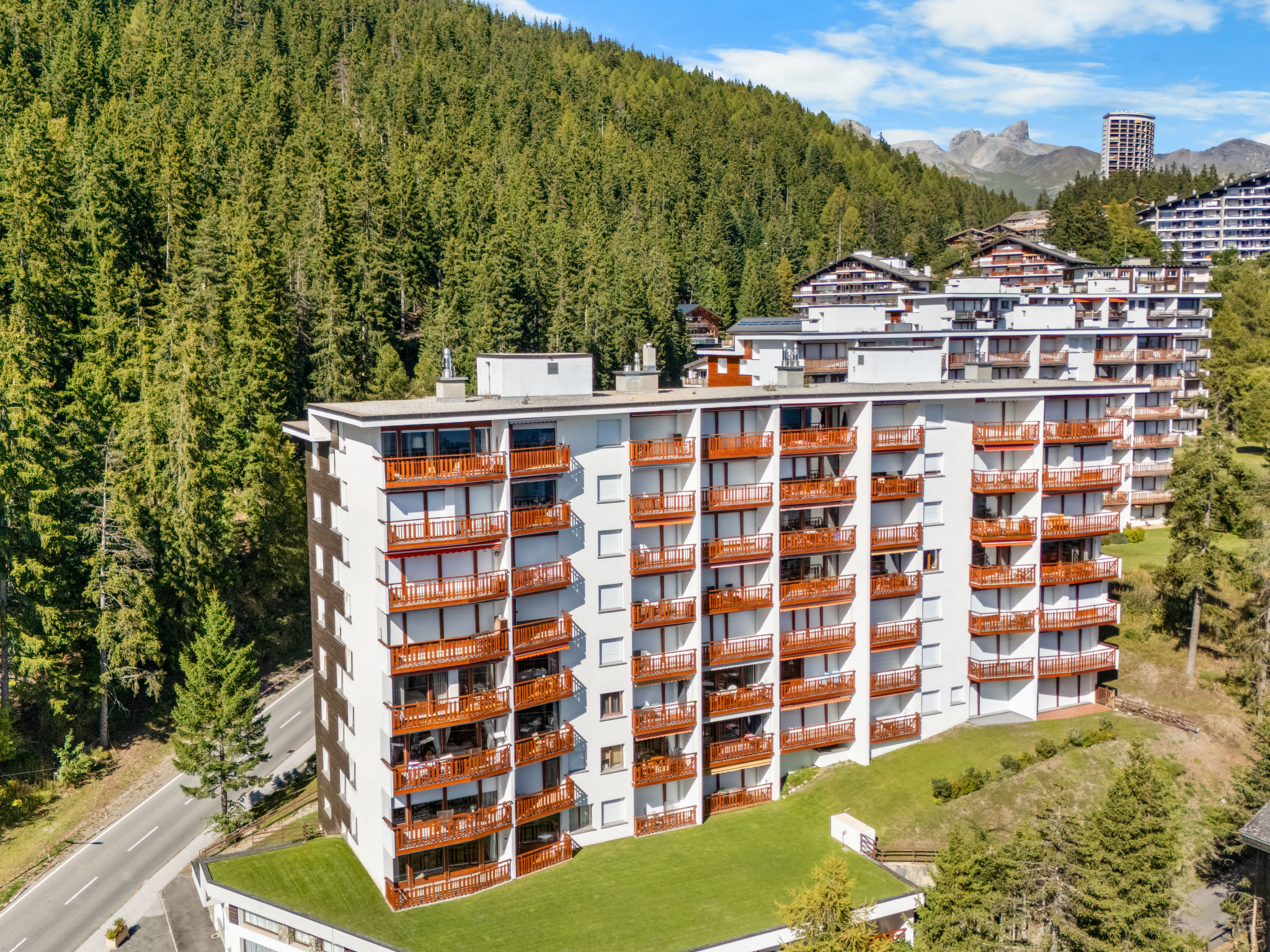Residence "La Forêt ouest C". Above Montana, in a sunny position, 700 m from the lake, 500 m from the skiing area. In the house: lift, storage room for skis, central heating system, washing machine, tumble dryer (for shared use, extra). Parking (limited number of spaces), public car park at 500 m, extra. Shop 1 km, supermarket 1 km, restaurant 1 km, bakery 1.2 km, 8 minute walk to the centre, bus stop "Résidence Forêt" 10 m, railway station "Funiculaire Montana Gare" 1.3 km, lake Grenon 700 m. Golf course (18 hole) 1.9 km, skisport facilities 500 m, ice rink 1 km. Well-known lakes can easily be reached: Etang Long 2 km, Lac Moubra 2 km. Please note: ski bus (free of charge). In case of good snow conditions, the house is accessible on skis.
