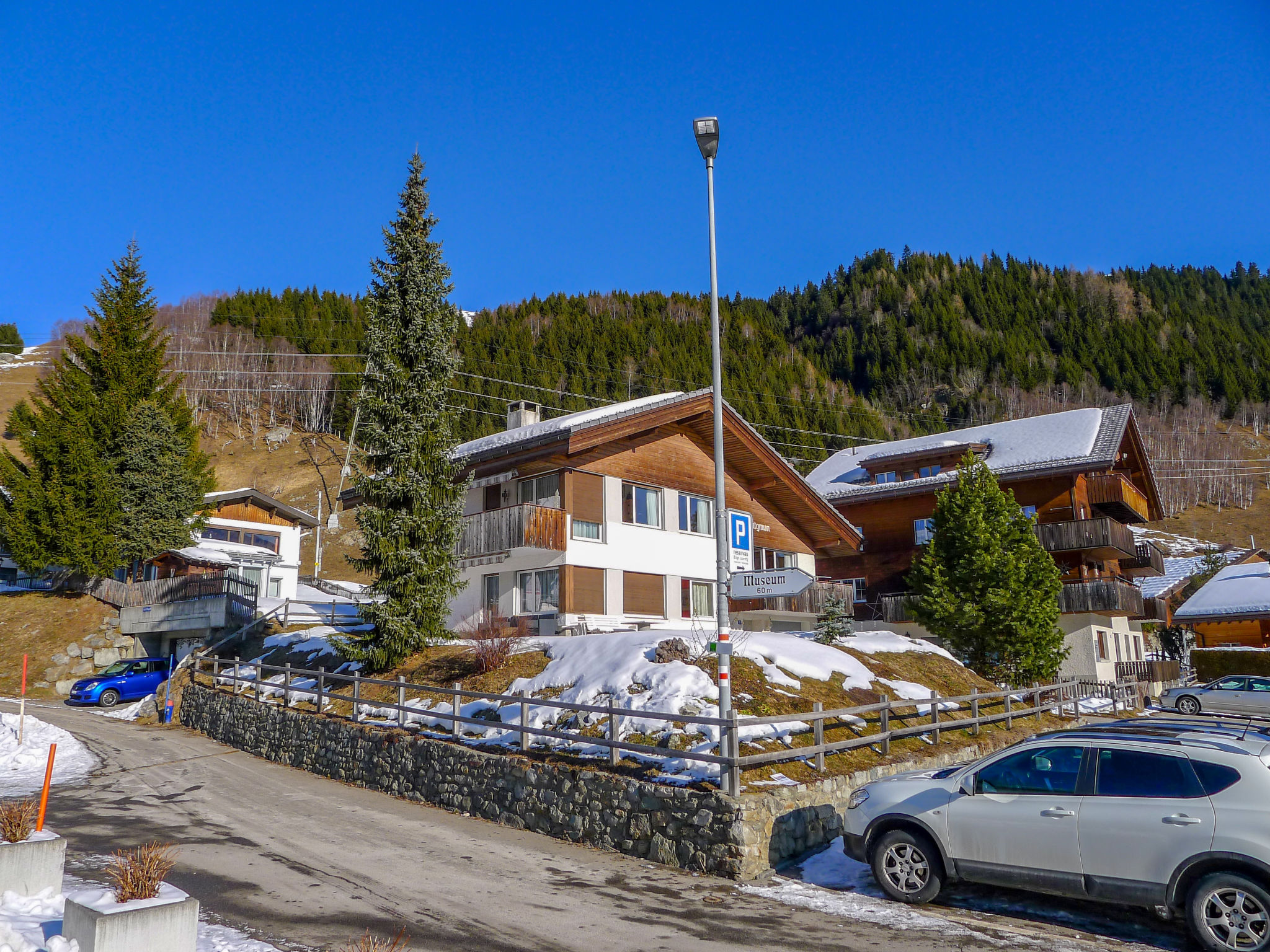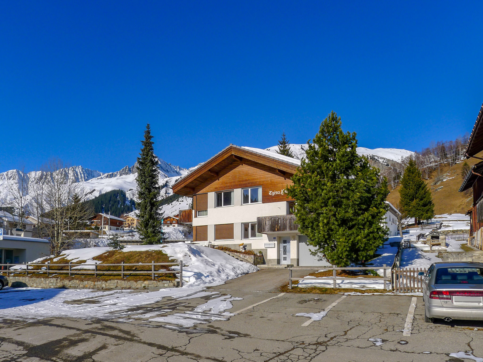 Beautiful chalet "Tgesa Pitgmun", 1'400 m a.s.l., 2 storeys. In the resort, in a quiet, sunny position on a slope, 200 m from the skiing area. Private: garden with lawn 80 m2. In the house: storage room for skis, central heating system. Narrow motor access to the house. Parking at the house. Grocery 300 m, restaurant 100 m, bus stop "Sedrun, Tgèsa Communala" 600 m, railway station "Sedrun" 300 m, indoor swimming pool 20 m, natural swimming pond 2 km. Golf course (9 hole) 3 km, tennis 250 m, walking paths from the house 20 m, ski lift, skisport facilities, slopes, ski rental, ski school 200 m, cross country ski track 300 m, ice rink 500 m, children's playground 100 m. Nearby attractions: Rodelbahn Caischavedra 8 km, Hängebrücke La Pendenta 8 km. Well-known ski regions can easily be reached: Ski Arena Andermatt/Sedrun/Disentis. Please note: the owner lives in the same residence. Bogn Sedrun: wellness, spa, sauna at 20m.