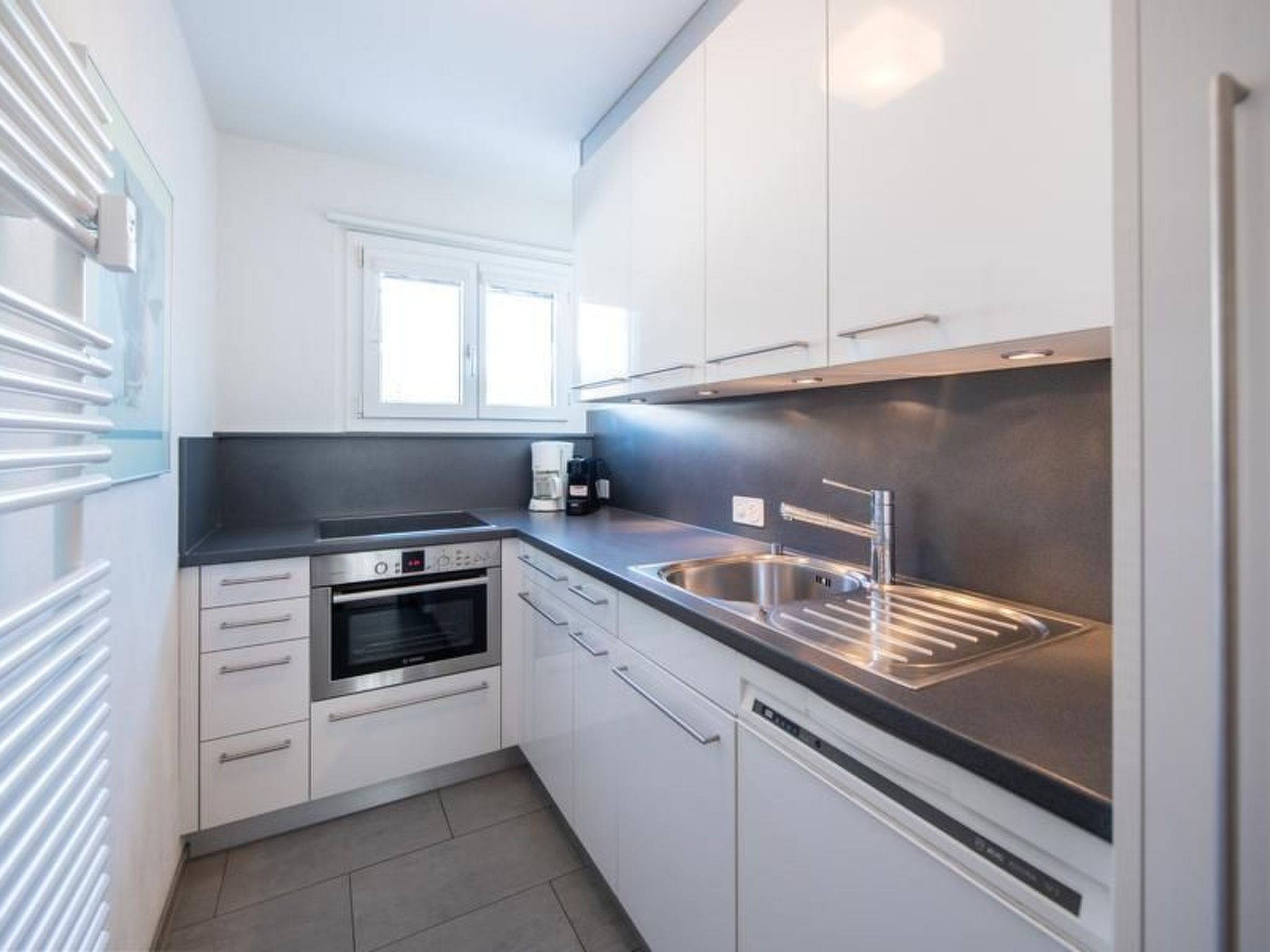 The kitchen is equipped with a Nespresso and filter coffee machine, toaster and kettle. An oven with microwave, a meat and cheese fondue set and a raclette oven complete the kitchen equipment. There is also a large fridge with freezer compartment, a dishwasher and central heating. Living room with 2 large sofas, 1 of which is electrically adjustable, TV with satellite dining table for 4-5 people. The living comfort includes 1 bathroom with a shower, washing machine, hairdryer and WC, iron and ironing board are also available.