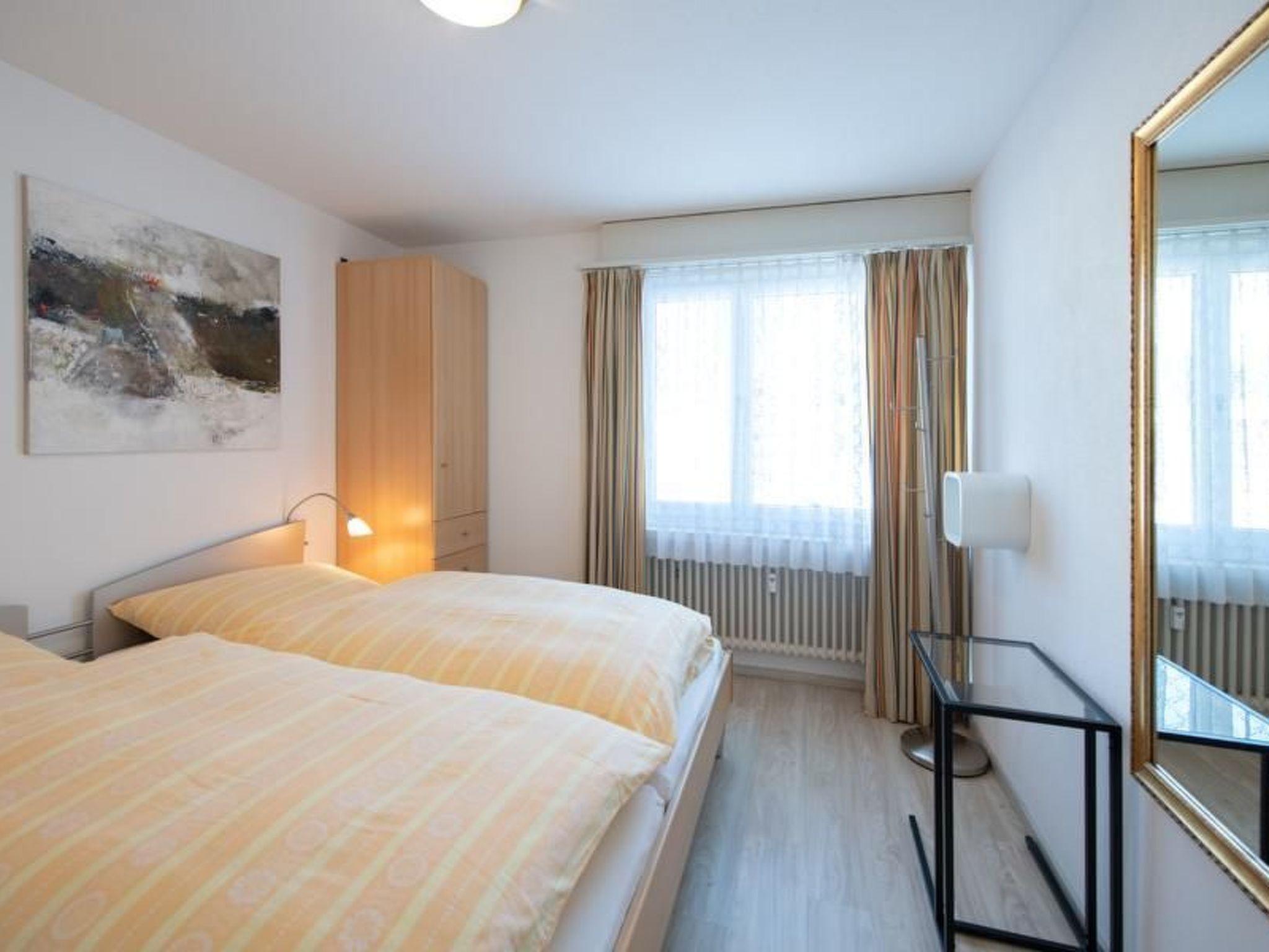Bedroom with 2 single beds (double bed). Bedroom with separate single bed and sofa bed as well as a modern console that can be used as a desk.