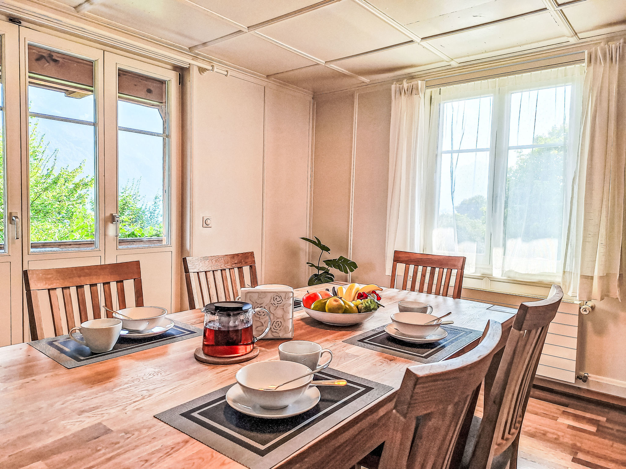 Very beautiful chalet "Haus am See", 3 storeys, detached. In a sunny position, 10 m from the lake. Private: natural state property, terraced garden (not fenced), lawn for sunbathing. Bathing place. In the house: central heating system, washing machine, tumble dryer, drying room. Parking on the premises. Shop 8.5 km, grocery 4 km, supermarket 8 km, restaurant 250 m, bus stop "Niederried Dorf" 350 m, railway station "Niederried" 400 m. Golf course (18 hole) 15 km. Nearby attractions: Jungfraujoch Top of Europe, Schilthorn Piz Gloria, Freilichtmuseum Ballenberg, Interlaken. Well-known ski regions can easily be reached: Grindelwald Kleine Scheidegg 26 km, Meiringen Hasliberg 27 km. Well-known lakes can easily be reached: Brienzersee, Thunersee. Hiking paths: Jungfrau Region. Please note: railway line closeby.
