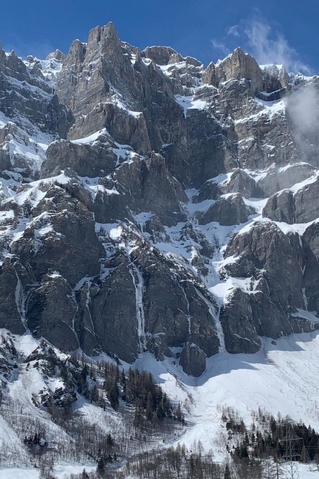 From our south-facing balcony (with folding table and garden chairs) you can see as far as the Rhone valley or over to the rock face (Gemmi) and from our east-facing balcony (with folding table and electric barbecue in the summer months) up to the Torrentbahnen ski area.