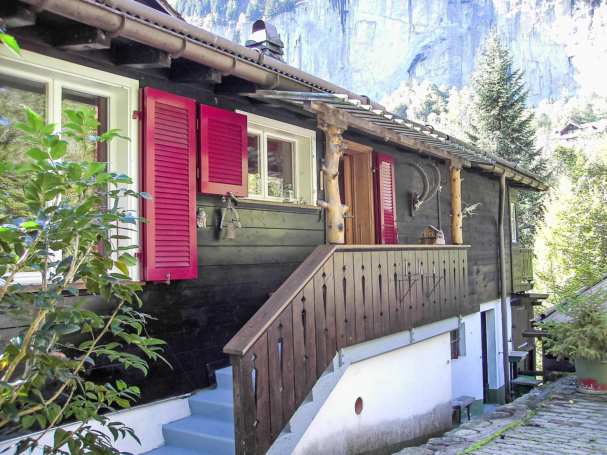 Rustic chalet "Stocki", semi-detached. In the district of Stocki, in a quiet, sunny position on a slope, 20 m from the stream, in the countryside. Private: patio, garden furniture, barbecue. Motor access to 100 m from the house. Public car park at 1.2 km, public parking 150 m. Supermarket 900 m, restaurant 500 m, bus stop 300 m, railway station "Lauterbrunnen" 1.2 km, outdoor swimming pool 1 km. Tennis 500 m, minigolf, walking paths from the house 100 m, cable car 1.2 km, skisport facilities 1.2 km, ski bus stop 300 m, cross country ski track 500 m, ice rink. Nearby attractions: Jungfraujoch, Schilthorn, Interlaken, Trümmelbachfälle. Well-known ski regions can easily be reached: Wengen - Männlichen, Mürren - Schilthorn. Well-known lakes can easily be reached: Brienzersee, Thunersee. Hiking paths: Jungfrau Region. Train station / town center by footpath: 400m.