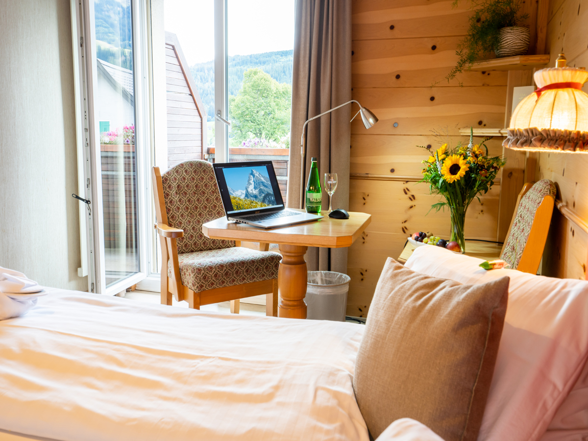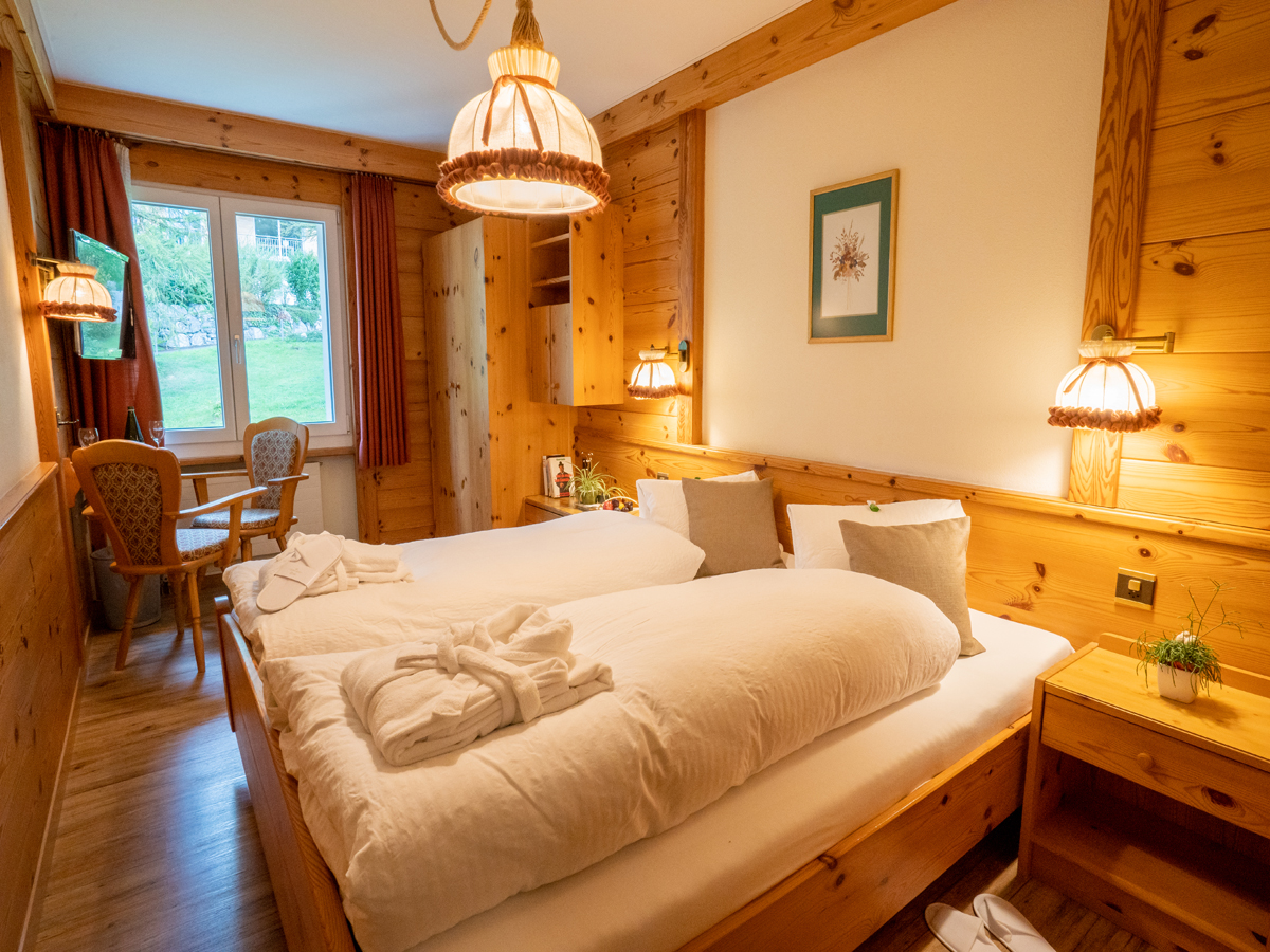 The Bijou Hotel in the village centre of Wildhaus has 26 homely furnished rooms with every comfort. Meals are served in the good home-style hotel restaurant with sun terrace. The cosy rooms are all lined with light pine wood and furnished with great attention to detail. The slightly smaller north rooms are quiet and face the mountain. The south rooms with balcony offer views of the Schafberg and the Churfirsten chain.