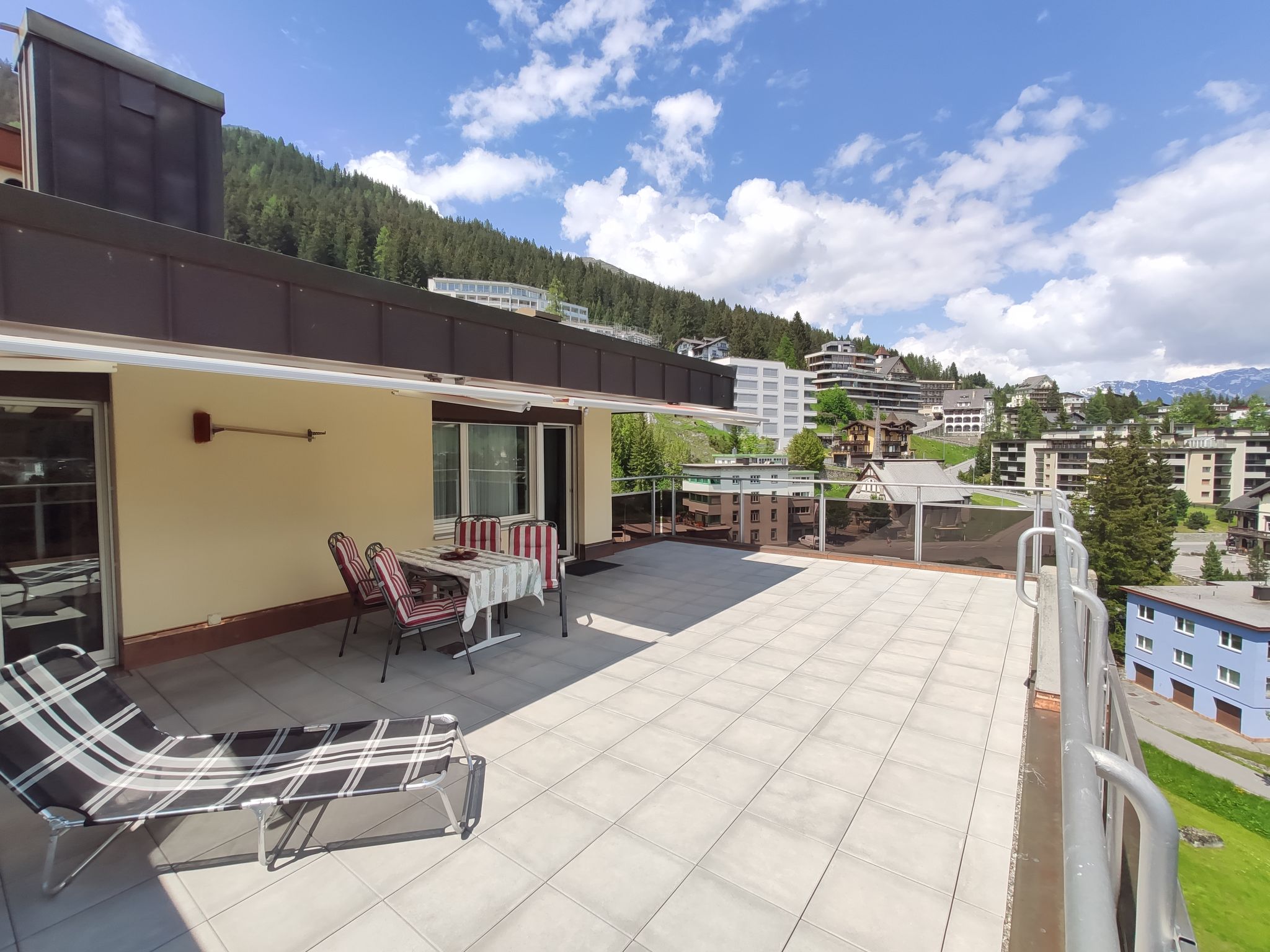 Davos-Platz: Comfortable apartment block "Allod-Park", 1'560 m a.s.l.. In the centre 700 m from the centre of Davos Platz, in a central, quiet position. For shared use: park. In the house: reception, restaurant, bar, WiFi, lift, storage room for skis, central heating system, washing machine (extra), tumble dryer (for shared use, extra), drying room, ski boot dryer. Linen change (suppl. charge extra). Towel change (suppl. charge extra). Room cleaning on request (extra). Motor access to the house. Parking (extra), communal covered parking (extra). Dimension: height 200 cm. Supermarket 800 m, shopping centre 400 m, restaurant 10 m, bakery 300 m, bus stop "Kongresszentrum" 100 m, railway station "Davos-Platz" 1.2 km, park "Kurpark" 50 m, outdoor swimming pool, indoor swimming pool 200 m, public bathing area 3.1 km, bathing lake 2.7 km, lake Davoser See 2.7 km. Golf course (18 hole) 2 km, surf school 3.1 km, sailing school 3.1 km, tennis 4 km, indoor tennis centre 4 km, minigolf 400 m, riding stable 5 km, sports centre 200 m, walking paths from the house, cycle lane 400 m, cable car 1.5 km, mountain railway 600 m, chair lift 1.8 km, gondola lift 1.7 km, slopes 1.7 km, ski rental 1.7 km, ski bus stop 50 m, ski school 1.5 km, children's ski school 1.5 km, cross country ski track 1 km, ice rink 200 m, children's playground 50 m. Nearby attractions: Kirchner Museum 50 m. Well-known ski regions can easily be reached: Parsenn 1.5 km, Jakobshorn 1.2 km, Rinerhorn 8 km. Well-known lakes can easily be reached: Davosersee 2.7 km. Please note: Loading and unloading of baggage is possible at the holiday house. The holiday properties may differ in situation, size and location. The holiday properties may differ in living space, floorplan, equipment and furnishing. Toboggan run Schatzalp-Davos. Garage spaces on request: CHF 10.00 per day. WiFi at or near the reception. Special features: weekly raclette and fondue evening. Meals can be ordered in the restaurant. Reservation of tickets for events.