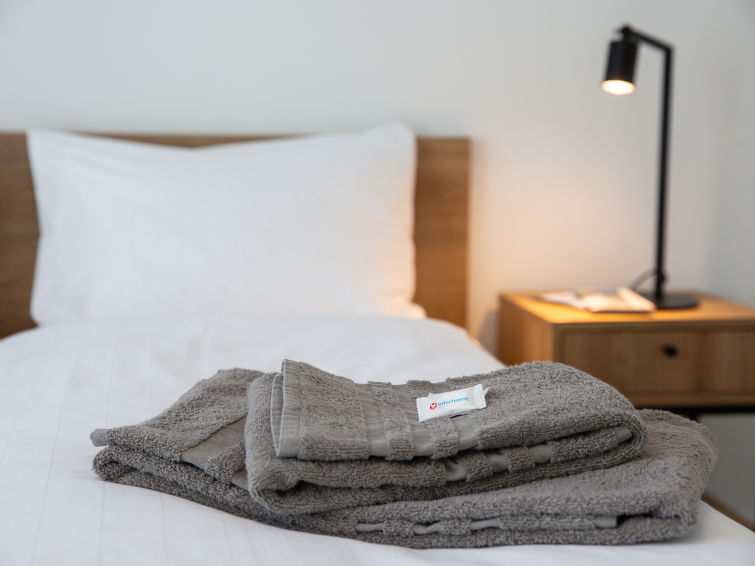 "LocTowers A4.5.4", 2-room apartment 59 m2 on 5th floor. Spacious and bright, very comfortable and modern furnishings: large living/dining room with 1 double sofabed (150 cm, length 200 cm), dining table, cable TV and digital TV. Exit to the balcony. 1 room with 1 double bed (2 x 80 cm, length 200 cm). Open kitchen (oven, dishwasher, 4 ceramic glass hob hotplates, toaster, kettle, freezer, electric coffee machine, Capsules for coffee machine (Delizio) extra, raclette grill, fondue Set (cheese)) with dining table. Shower/WC. Underfloor heating. Balcony 8 m2, east facing position and north facing position. Balcony furniture. View of the resort. Facilities: washing machine, dryer, iron, children's high chair, baby cot (extra), hair dryer. Internet (WiFi, free). Please note: non-smokers only. Maximum 1 pet/ dog allowed. NL-00007183