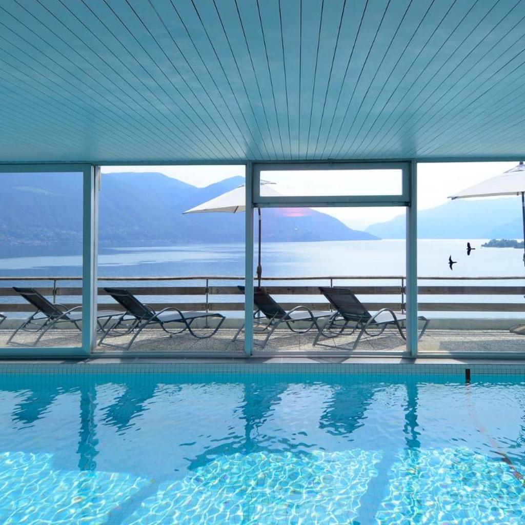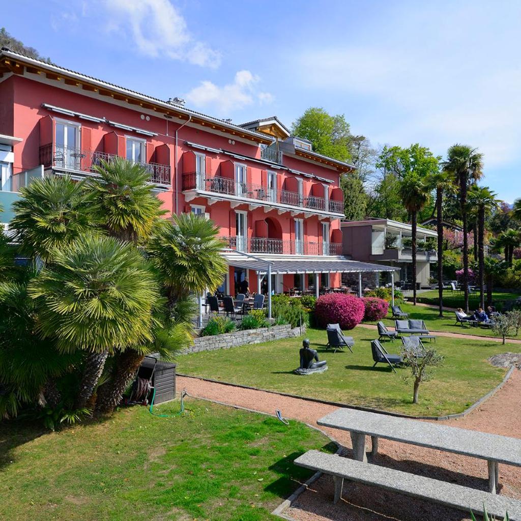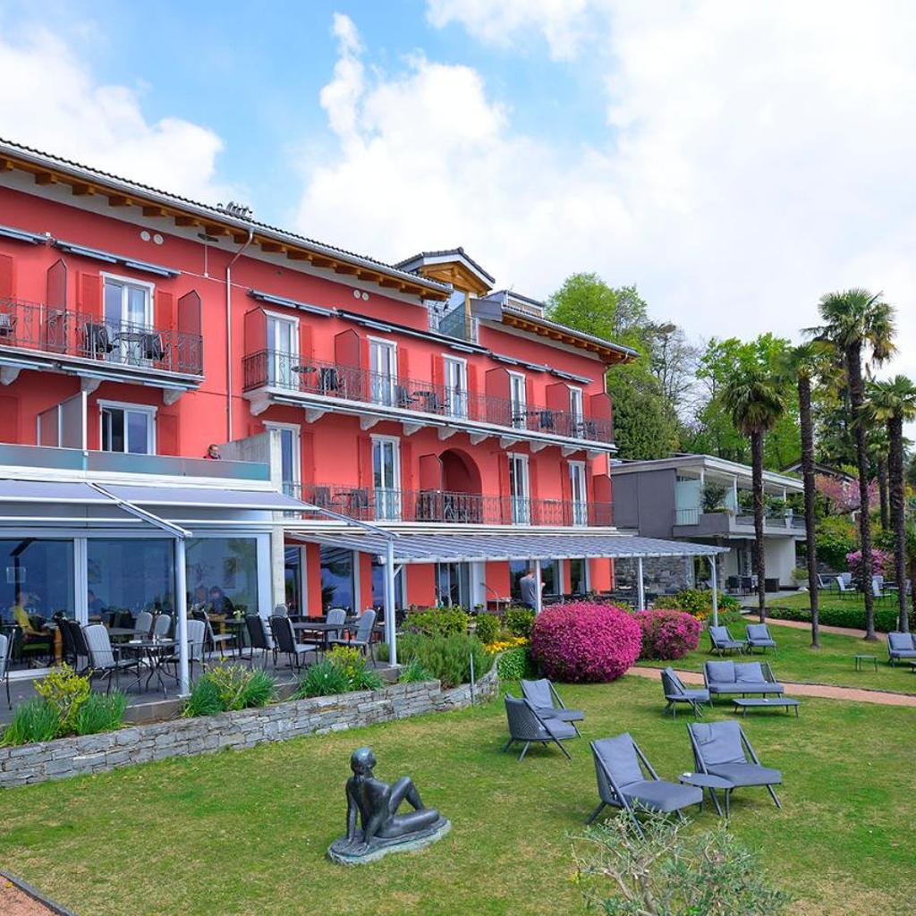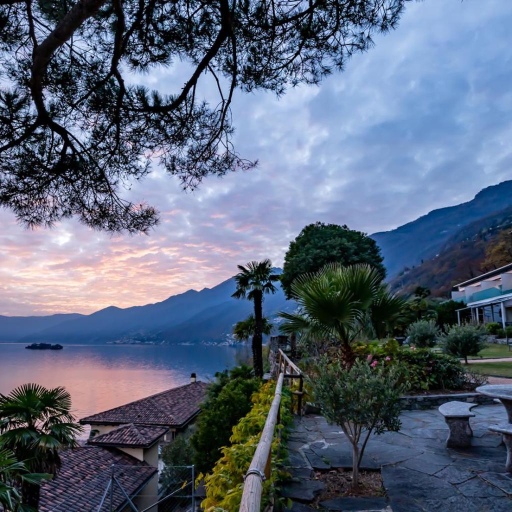 The Collinetta Hotel in Ascona is nestled within a Mediterranean park with palm trees and lemon trees, directly above Lake Maggiore, offering rooms with a balcony or terrace. It also features a restaurant, an indoor pool (March to November), and a small fitness room.
