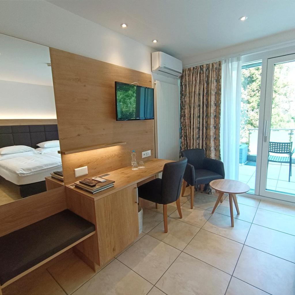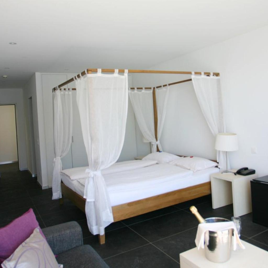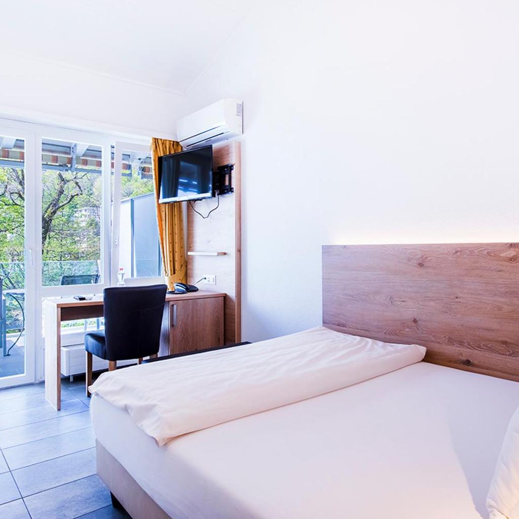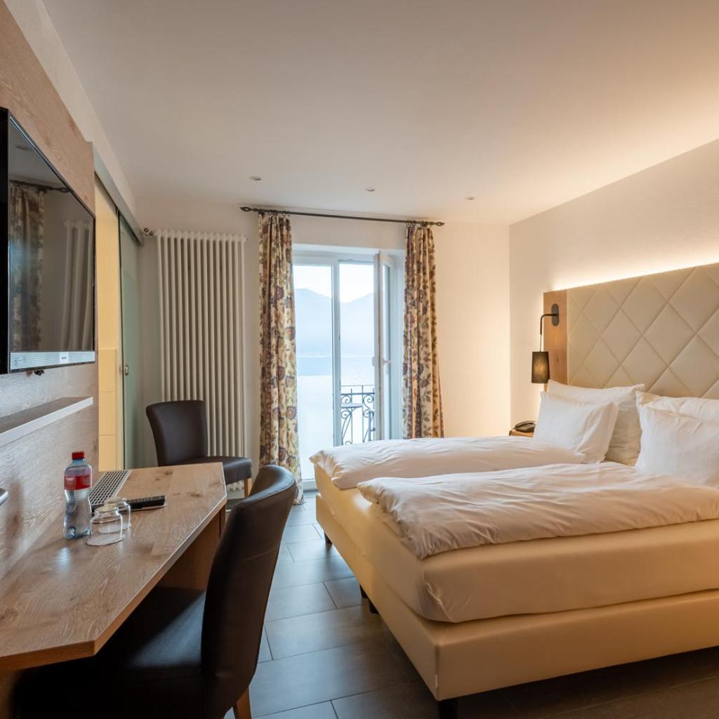 The Collinetta Hotel in Ascona is nestled within a Mediterranean park with palm trees and lemon trees, directly above Lake Maggiore, offering rooms with a balcony or terrace. It also features a restaurant, an indoor pool (March to November), and a small fitness room.