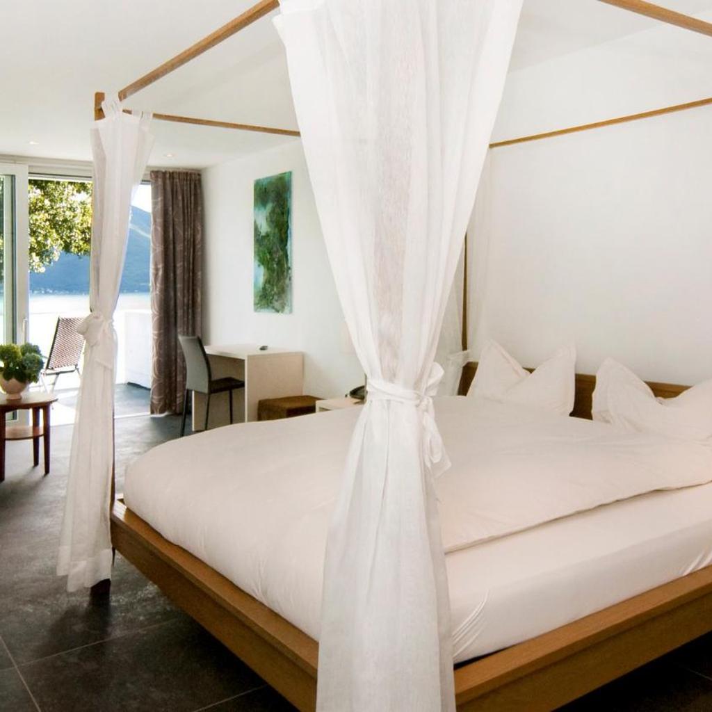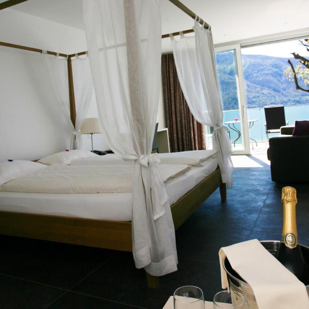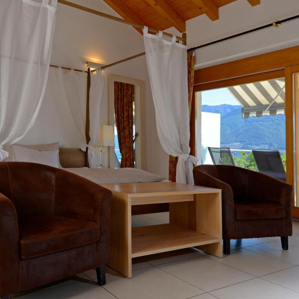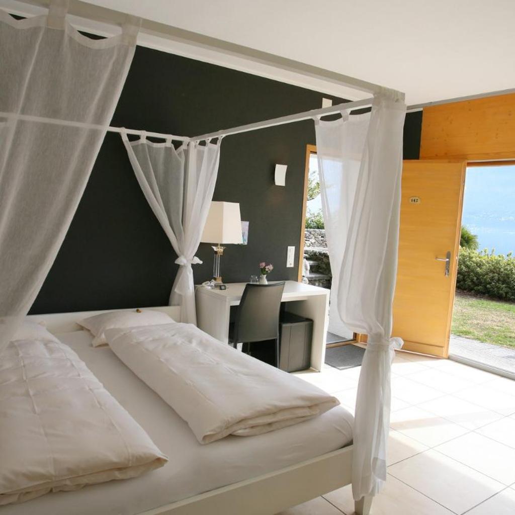 The center of Ascona is 1.5 km away and Locarno is 4 km away.