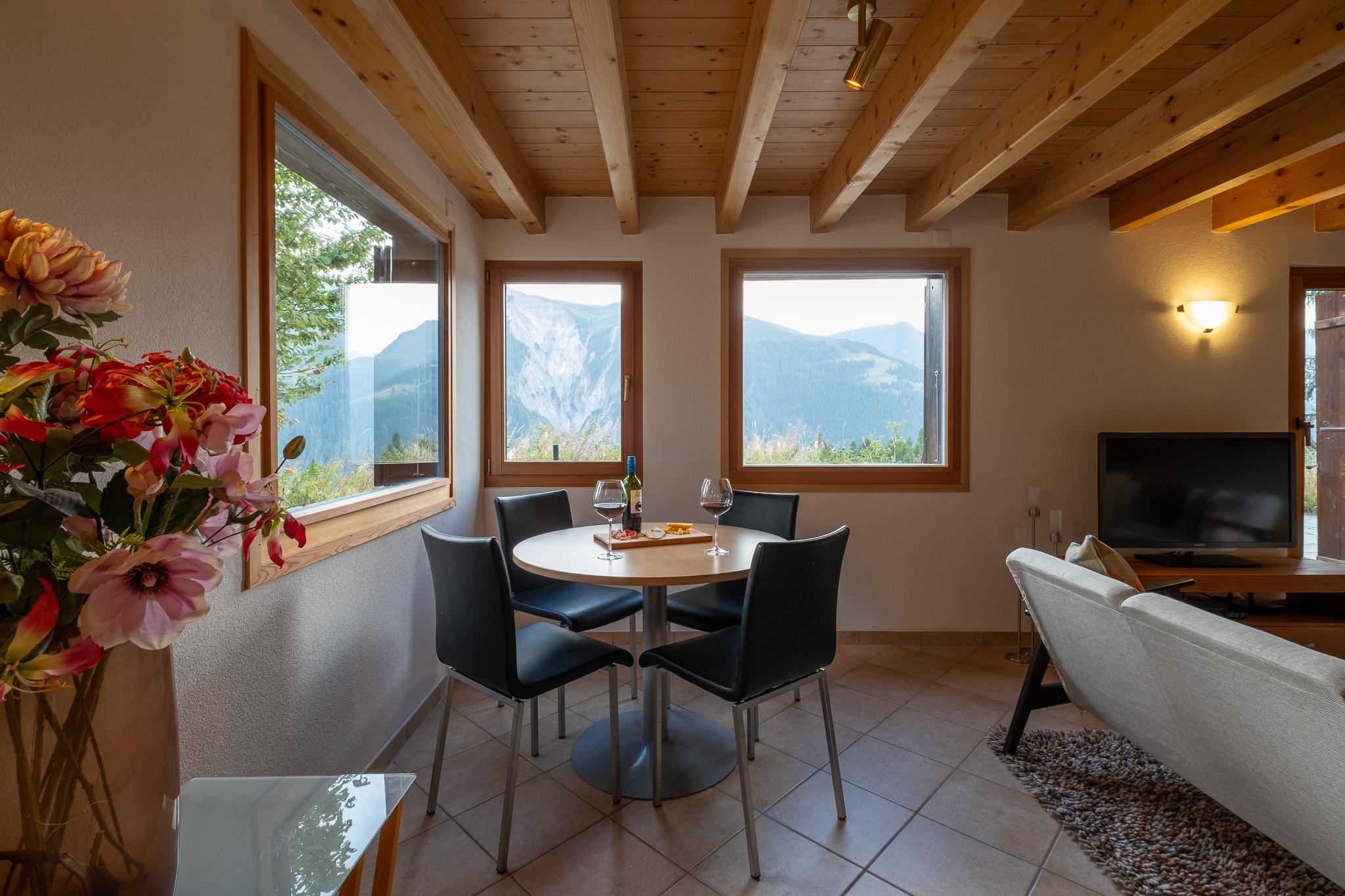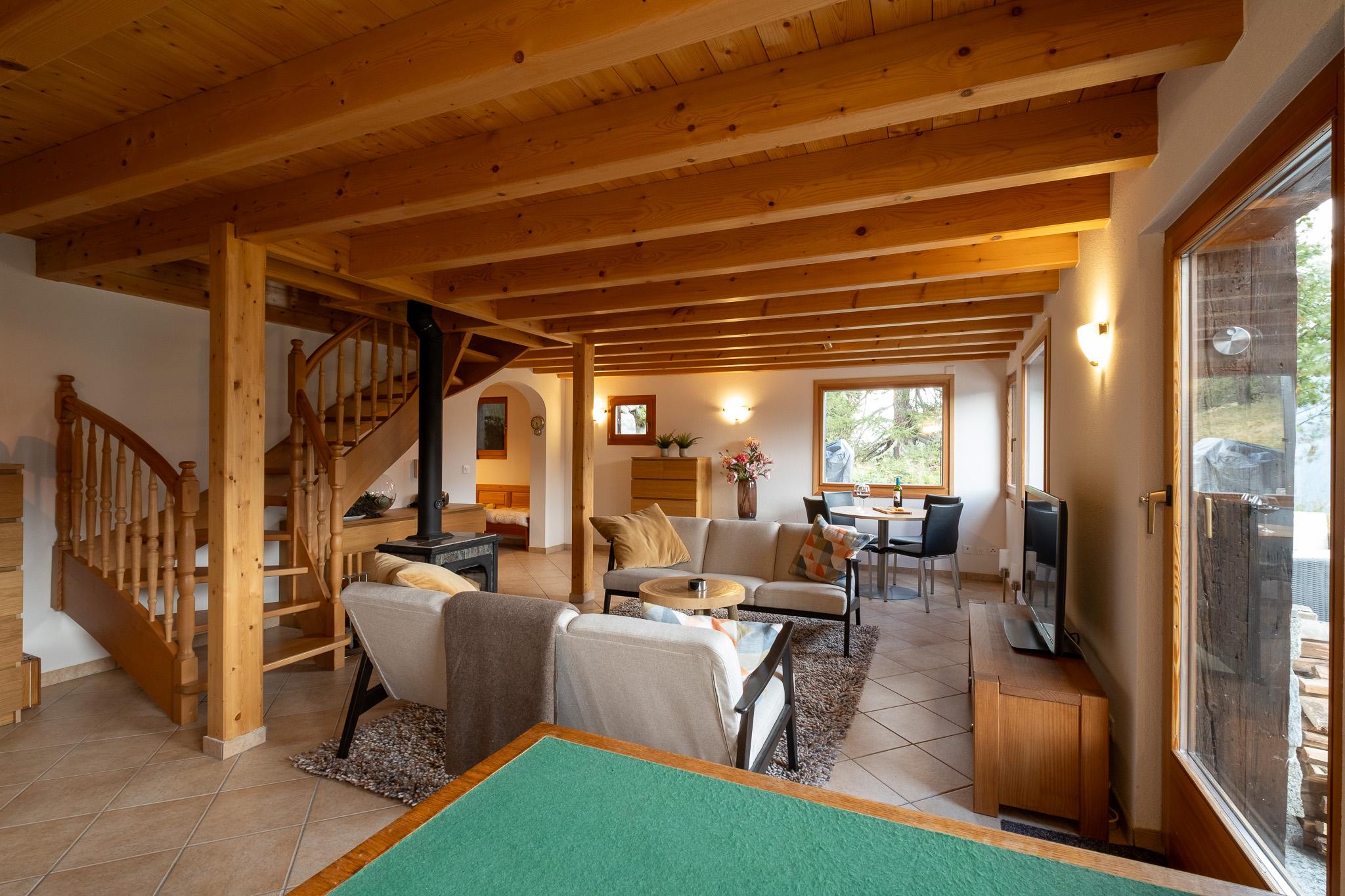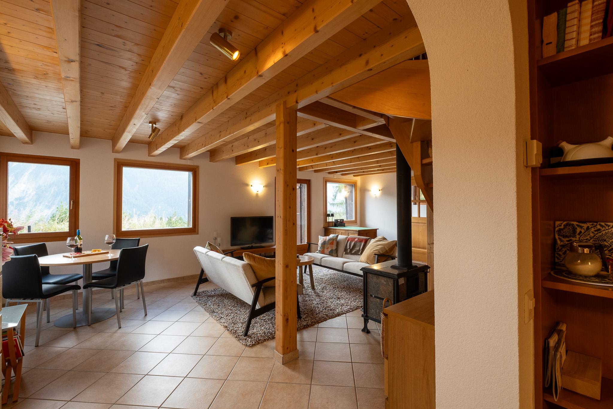 With a view of the Valais Alps, a fireplace in the living room, and a peace known only to the mountains, you can relax and reflect on the day.