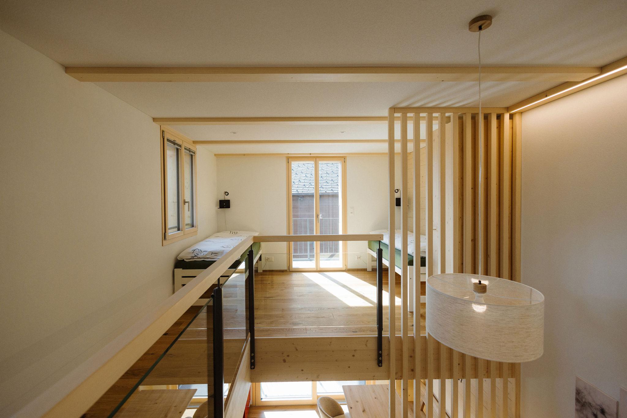 L'appartement coquet est équipé d'une chambre à coucher avec un lit boxspring, de deux lits simples sur la mezzanine, d'un salon avec Flat-TV et WLAN, d'une cuisine entièrement équipée et d'une salle de bains avec douche à effet pluie et WC. Lit d'enfant disponible sur demande.