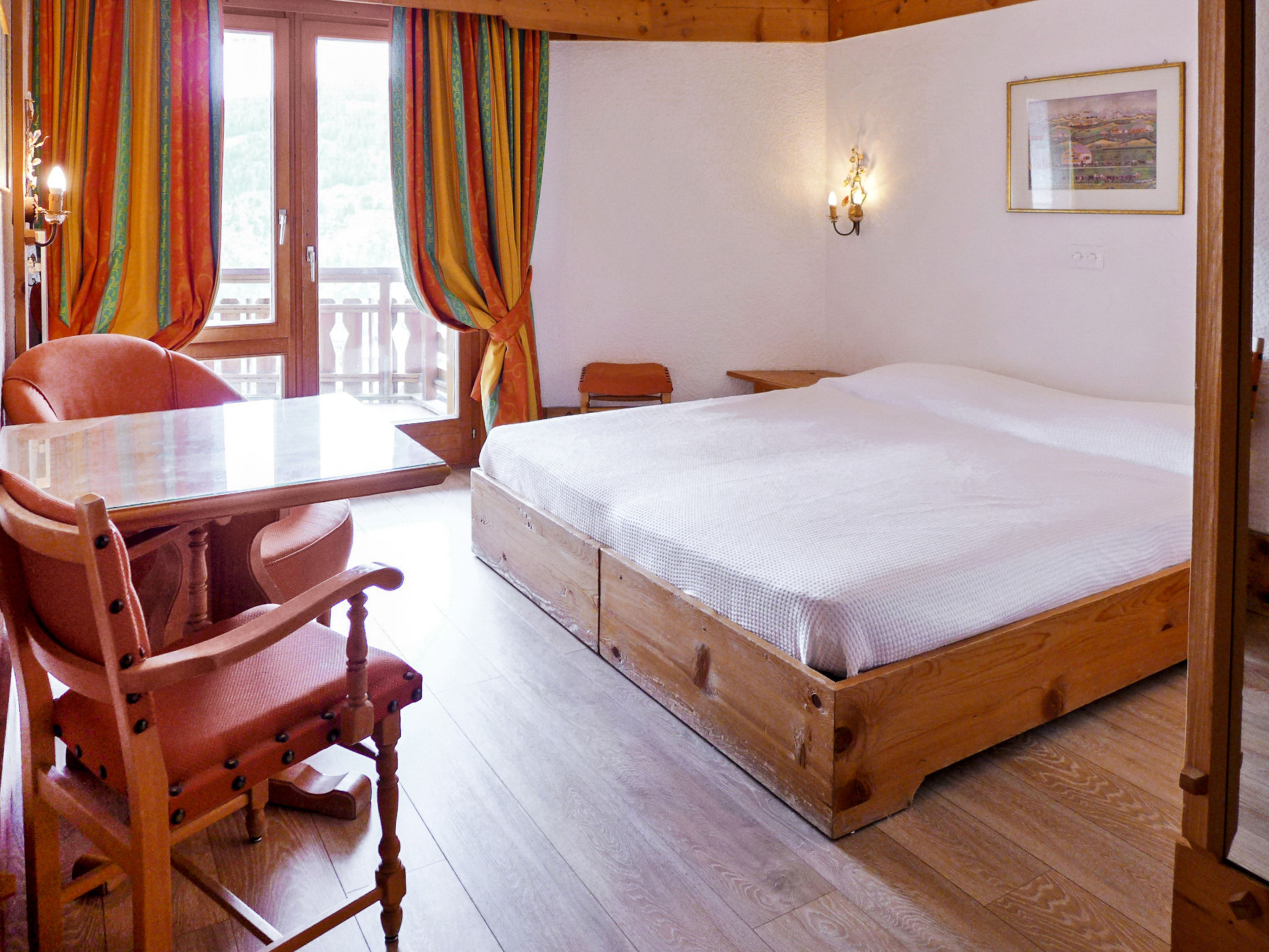 "Le Bristol A54", apt 2 pièces 57 m2 au 5ème étage. Clair, aménagement confortable et agréable: grand séjour/chambre à coucher avec 1 divan-lit double (2 x 80 cm, longueur 200 cm), table pour les repas, bain/WC et TV (écran plat), DVD. Sortie sur le balcon, orientée ouest. 1 chambre double avec 2 lits (90 cm), bain/WC. Sortie sur le balcon. Coin cuisine dans l'entrée (mini-four, four, 2 plaques vitrocéramiques, grille-pain, bouilloire électrique, micro-ondes, cafetière électrique, appareil à raclette, service à fondue (fondue au fromage)). Balcon 14 m2. Mobilier de balcon. Très belle vue sur les montagnes et la vallée. A disposition: sèche-cheveux. Internet (Connexion WIFI, gratuit). Veuillez noter: logement non-fumeur.