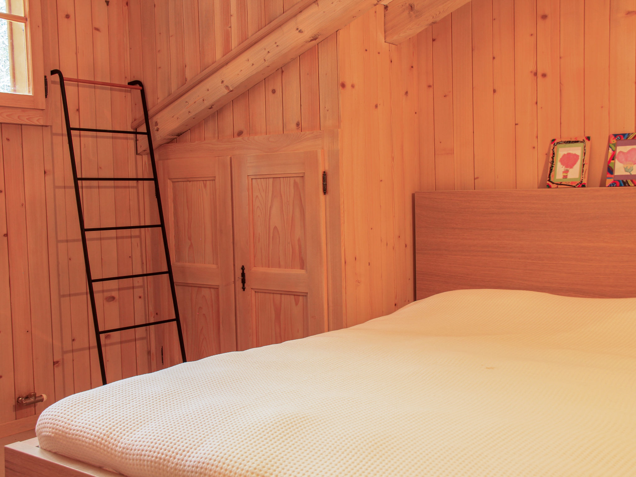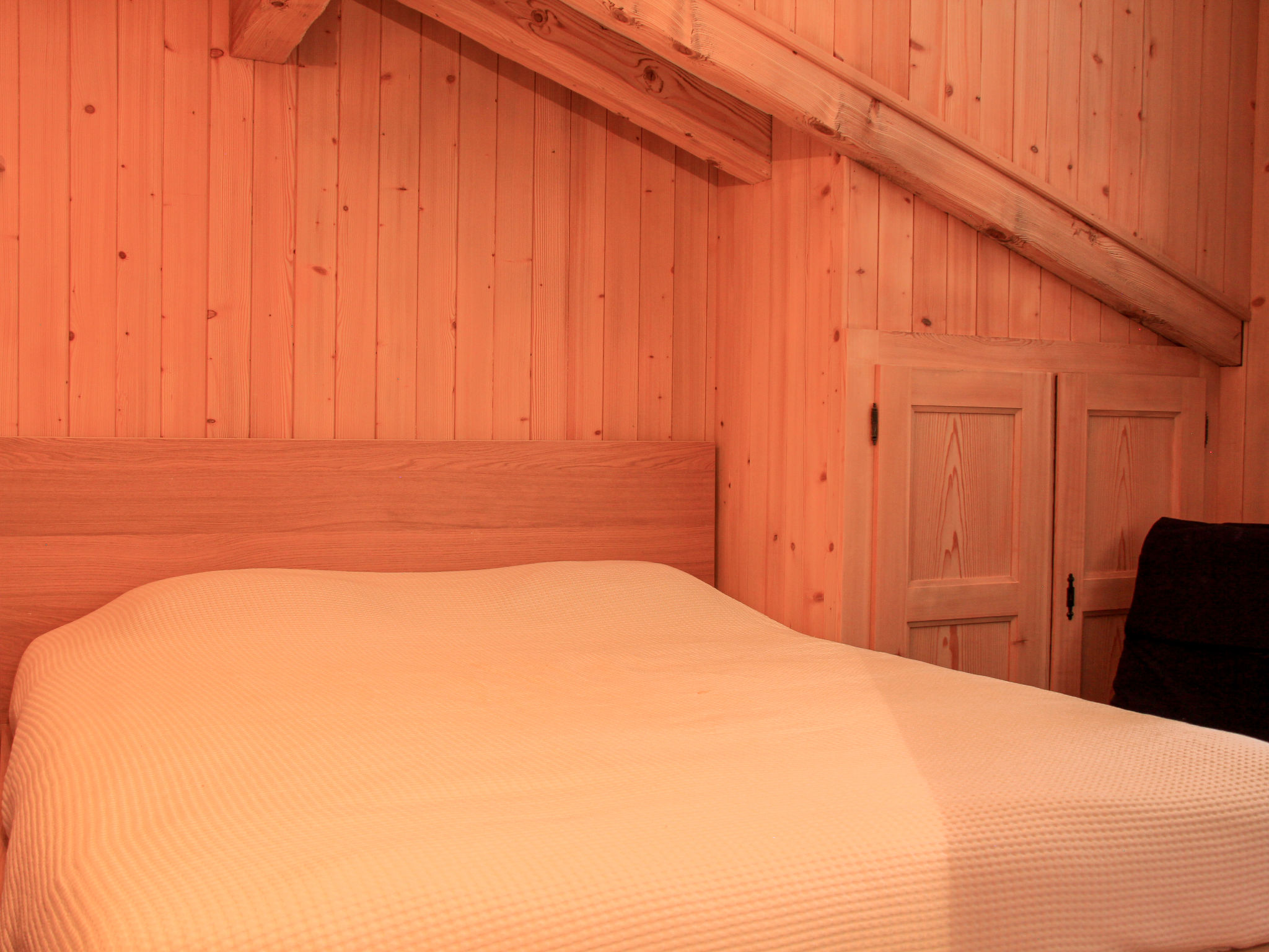 "Muscardin 5/6", apt sous les toits 5 pièces 130 m2 au 3ème étage, situation sud. Spacieux, mansardé, complètement rénové en 2022, aménagement très confortable et plaisant: séjour/salle à manger mansardé hauteur plafond 300 - 400 cm avec cheminée, table pour les repas et TV (écran plat). Sortie sur le balcon. 1 chambre avec 1 grand-lit (2 x 80 cm, longueur 200 cm). 1 chambre avec 1 lit double (160 cm, longueur 200 cm). 1 chambre avec 1 lit double (160 cm, longueur 200 cm). 1 chambre avec 1 lit double (160 cm, longueur 200 cm). Cuisine ouverte (four, lave-vaisselle, 4 plaques à induction, grille-pain, bouilloire électrique, micro-ondes, congélateur, cafetière électrique, Capsules pour machine à café (Nespresso) (NON INCLUSES), appareil à raclette, service à fondue (fondue au fromage)). Douche/WC, WC séparé, bain/douche/WC, double vasque. Balcon 25 m2, situation sud. Mobilier de balcon. Belle vue panoramique sur les montagnes. A disposition: sèche-cheveux. Internet (Connexion WIFI, gratuit). Garage (1 Voiture). Maximum 1 animal/ chien autorisé.