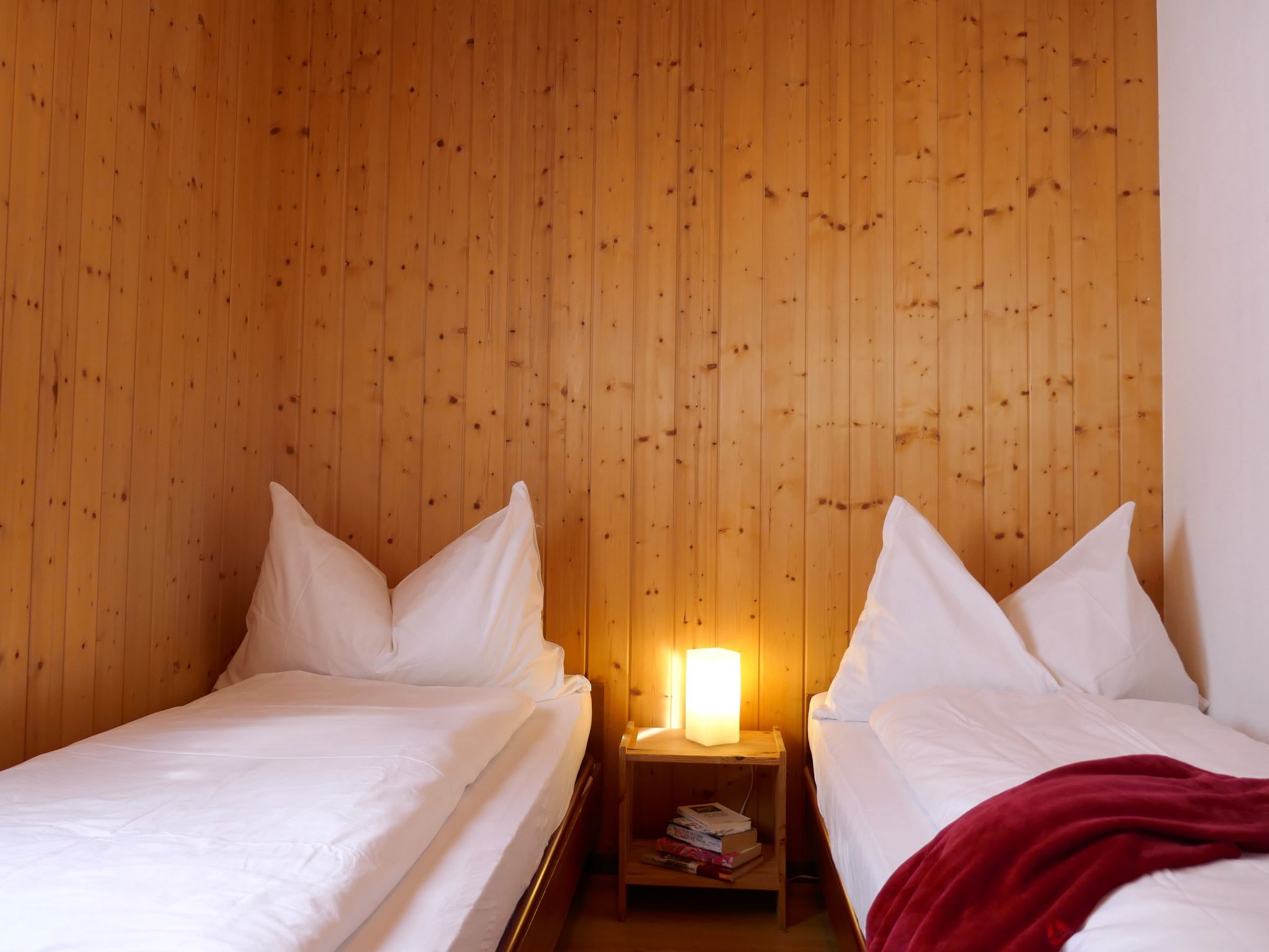 "Prou Forestside", apt 3 pièces 59 m2. Spacieux et clair, aménagement rustique et plaisant: séjour/salle à manger ouvert avec table pour les repas et TV (satellite) (écran plat), chaîne stéréo. Sortie sur le jardin. 1 chambre double avec 1 lit double (1 x 160 cm, longueur 200 cm). 1 chambre avec 2 lits (80 cm, longueur 200 cm). Cuisine ouverte (four, lave-vaisselle, 4 plaques à induction, grille-pain, bouilloire électrique, micro-ondes, cafetière électrique, Capsules pour machine à café (Dolce Gusto) (NON INCLUSES), appareil à raclette, service à fondue (fondue au fromage)). Douche/WC. Chauffage électrique, chauffe eau (120 litres). Jardin. Chaises longues (2), place pour s'asseoir. Belle vue sur les montagnes, la localité et la forêt. A disposition: lave-linge, sèche-linge, chaise haute pour enfant, lit bébé jusqu'à 2 ans (en sus), sèche-cheveux. Internet (Connexion WIFI). Veuillez noter: maison non-fumeur. Maximum 1 animal/ chien autorisé. Entrée privée. Pas de liaison interne entre les différentes unités. NL-00011438