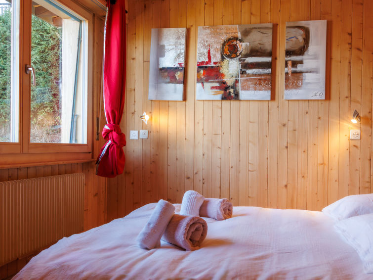 "Le Bouquetin", chalet 6 pièces 195 m2 sur 3 niveaux. Partiellement mansardé, aménagement de bon goût et avec beaucoup de bois: séjour/salle à manger avec poêle suédois et TV (câblée). 1 petite chambre avec 1 lit (120 cm, longueur 190 cm). 1 chambre avec 1 grand-lit (160 cm, longueur 200 cm). (four, lave-vaisselle, 4 plaques vitrocéramiques, grille-pain, micro-ondes, cafetière électrique, Capsules pour machine à café (Dolce Gusto), service à fondue (fondue au fromage)). Salle de bains, WC séparé. À l'étage inférieur: 1 chambre avec 1 grand-lit. Sortie sur la terrasse, orientée nord. Douche/WC. Sous le toit: (échelle) 1 chambre, mansardée, ouverte hauteur plafond 110 - 130 cm avec 2 lits (90 cm, longueur 190 cm). 1 chambre, mansardée hauteur plafond 110 - 230 cm avec 1 grand-lit (140 cm, longueur 190 cm). Terrasse, situation nord et situation ouest. Meubles de terrasse, barbecue. Belle vue sur la vallée. A disposition: lave-linge, sèche-linge. Internet (Connexion WIFI). Place de parking. Veuillez noter: non recommandé pour des enfants en bas âge. Logement non-fumeur.