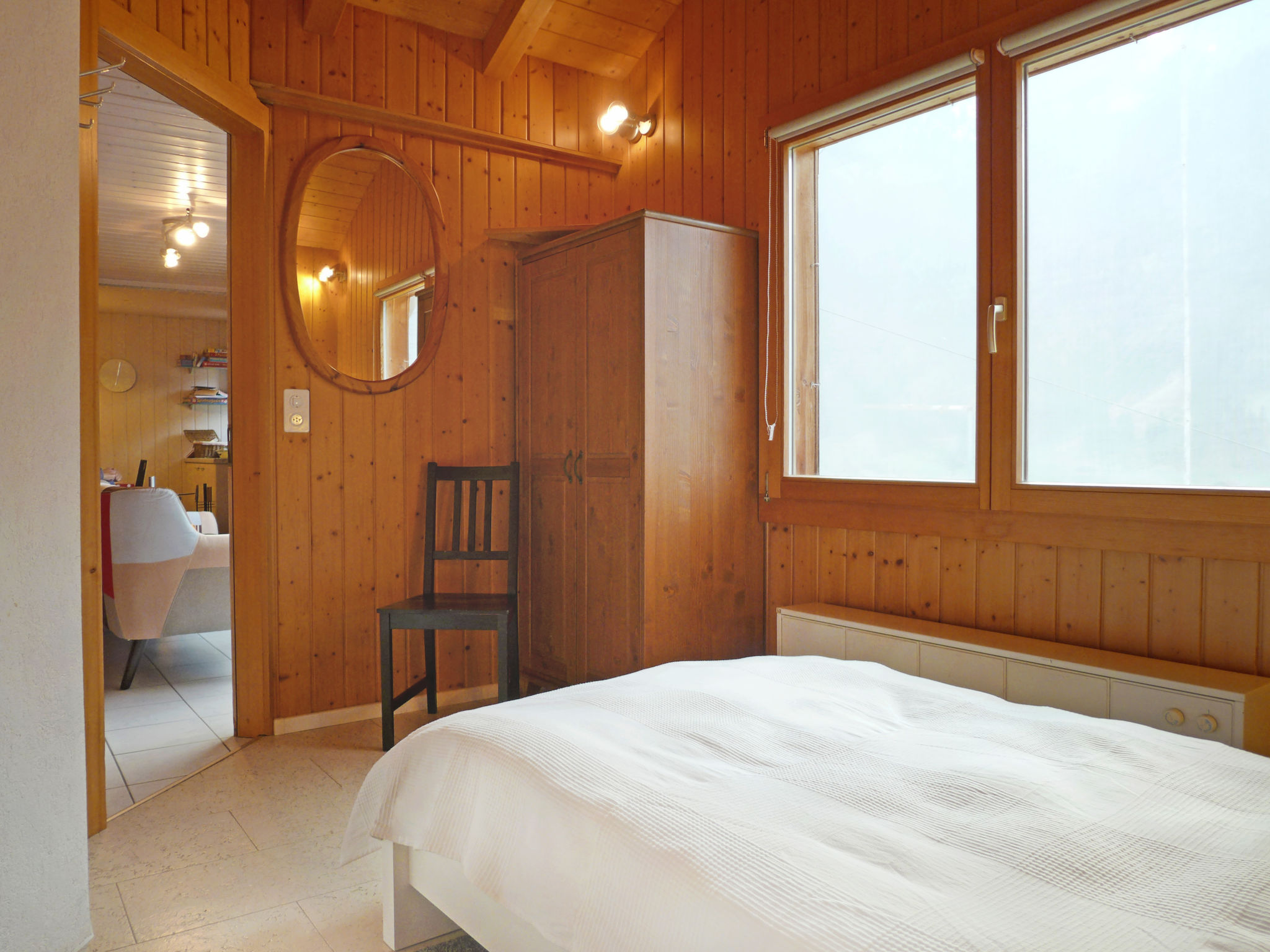 Chalet 5 pièces 83 m2 sur 2 niveaux. Clair, partiellement mansardé, aménagement simple et plaisant: séjour/salle à manger ouvert avec baie vitrée avec poêle suédois. Sortie sur la terrasse. 1 chambre avec 2 lits (90 cm, longueur 200 cm). 1 grande chambre d'enfants avec 1 x 2 lits superposés (90 cm, longueur 200 cm). Petite cuisine ouverte (four, lave-vaisselle, 4 plaques vitrocéramiques, micro-ondes, congélateur, cafetière électrique, appareil à raclette, service à fondue (fondue au fromage)). Douche/WC. À l'étage inférieur: (escalier raide) 1 chambre double avec 1 lit double (160 cm, longueur 200 cm), bain/WC. Sortie sur le jardin. Terrasse, situation sud. Meubles de terrasse, chaises longues (2). Très belle vue panoramique sur les montagnes, la vallée et les alentours. A disposition: chaise haute pour enfant, lit bébé jusqu'à 3 ans, sèche-cheveux, bois (en sus). Internet (Connexion WIFI, gratuit). Veuillez noter: adapté(e) aux familles. Maison non-fumeur.