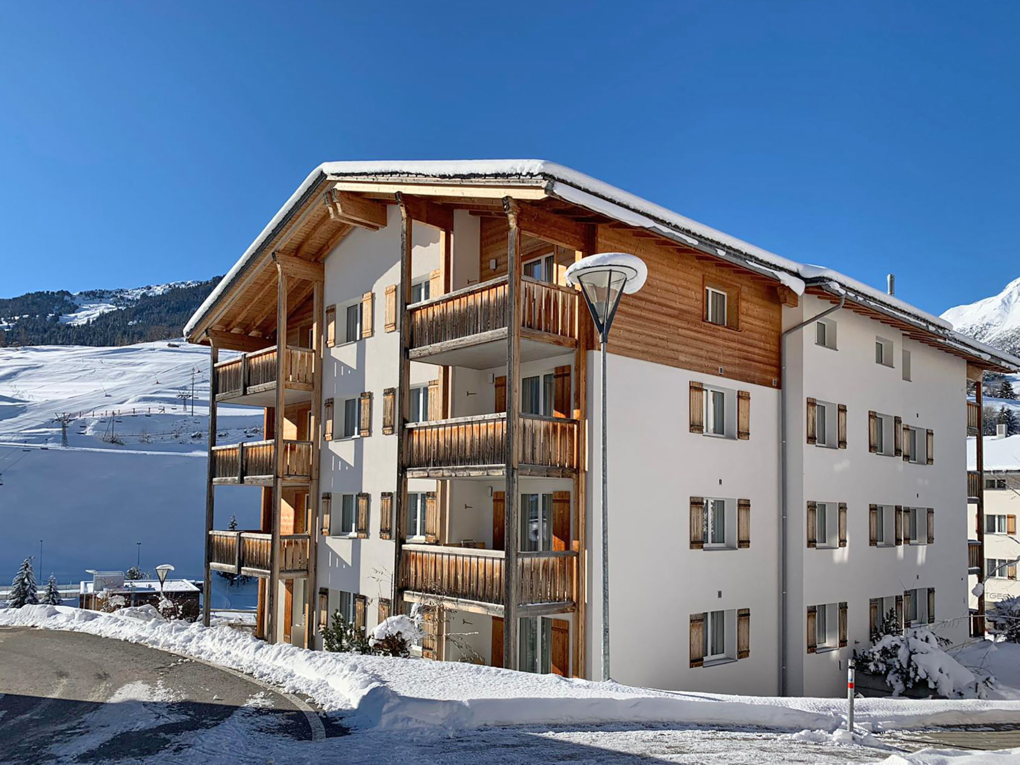 Complexe de vacances accueillant pour les enfants, accueillant, confortable "Surses Alpin", 1'200 m au dessus du niveau de la mer. 4 maisons dans le même complexe de vacances. Dans la localité, à 200 m du centre, situation tranquille, ensoleillée sur un versant, à 300 m du domaine skiable. En commun: terrain, pré. Espace de jeux pour les enfants (toboggan, balançoire). Infrastructures de la résidence: réception, Connexion WIFI, salle de jeux, baby foot, ascenseur, réduit pour bicyclettes, local pour les skis, chauffage central, lave-linge, sèche-linge (en commun, en sus), étendoir à linge. Accès en voiture jusqu'à la maison. Place de parking (en sus) près de la maison. Magasins, magasin d'alimentation, restaurant 200 m, arrêt de bus 200 m, gare ferroviaire "Tiefencastel" 9 km, baignade en lac. Terrain de golf (18 trous) 15 km, golf miniature 400 m, téléski 300 m, télésiège, télécabine 300 m, remontées mécaniques, pistes de ski, location de ski 300 m. Arrêt du ski-bus 10 m, école de ski, piste de luge, ski de fond, patinoire 800 m, jeux pour enfants 50 m. Les domaines skiables de renommée sont facilement accessibles: Lenzerheide 20 km, St.Moritz 38 km. Région de randonnées: Parc Ela, Engadin 35 km. La photo n´est qu´un exemple. Forfaits de ski à prix réduit (à partir de 3 jours) disponibles sur place.