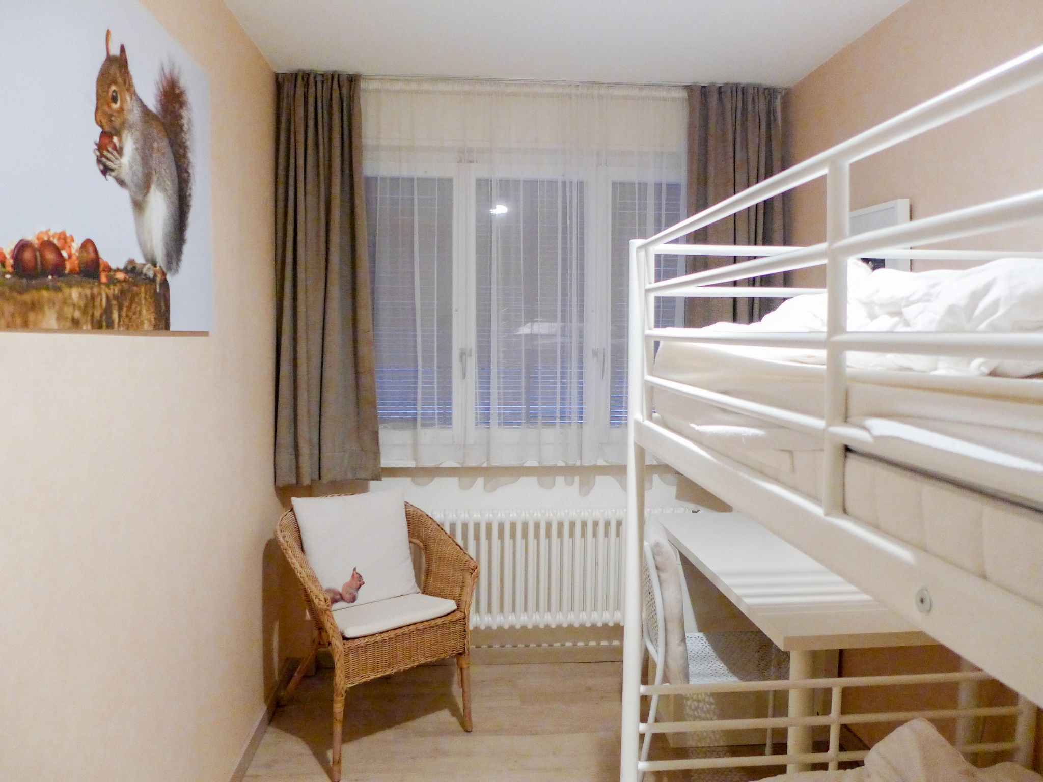 "Barzettes-Vacances 558 / Entrée N° 18", apt 4 pièces 90 m2 au 3ème étage. Rénové en 2020: séjour/salle à manger avec TV (câblée), écran plat et DVD. 1 chambre avec 2 lits (90 cm, longueur 200 cm). 1 chambre avec 1 grand-lit (160 cm, longueur 200 cm). 1 chambre avec 1 x 2 lits superposés (90 cm, longueur 200 cm). Cuisine (four, lave-vaisselle, 4 plaques vitrocéramiques, grille-pain, bouilloire électrique, micro-ondes, cafetière électrique, Capsules pour machine à café (NESPRESSO) (NON INCLUSES), appareil à raclette, service à fondue (fondue chinoise)). Douche/WC. Petit balcon, situation est. Vue latérale sur les montagnes et la forêt. A disposition: sèche-cheveux. Internet (Connexion WIFI, gratuit). Veuillez noter: logement non-fumeur.