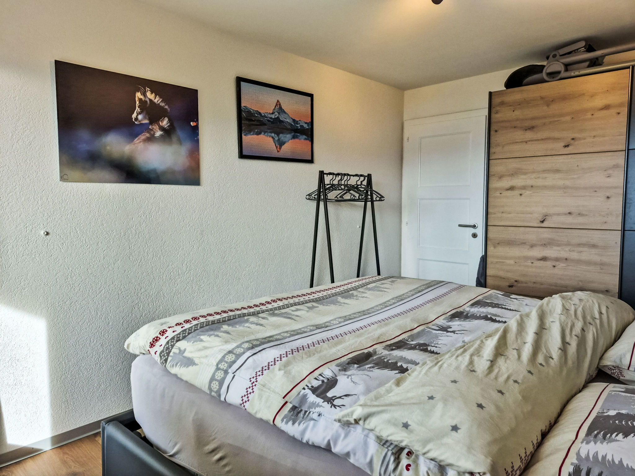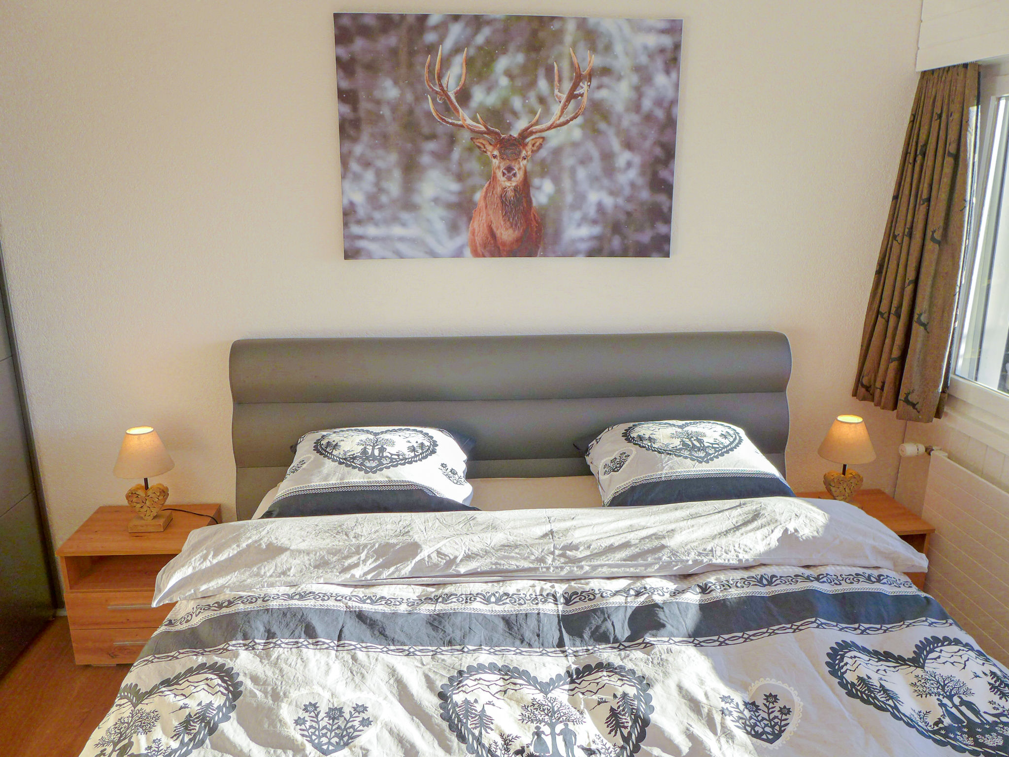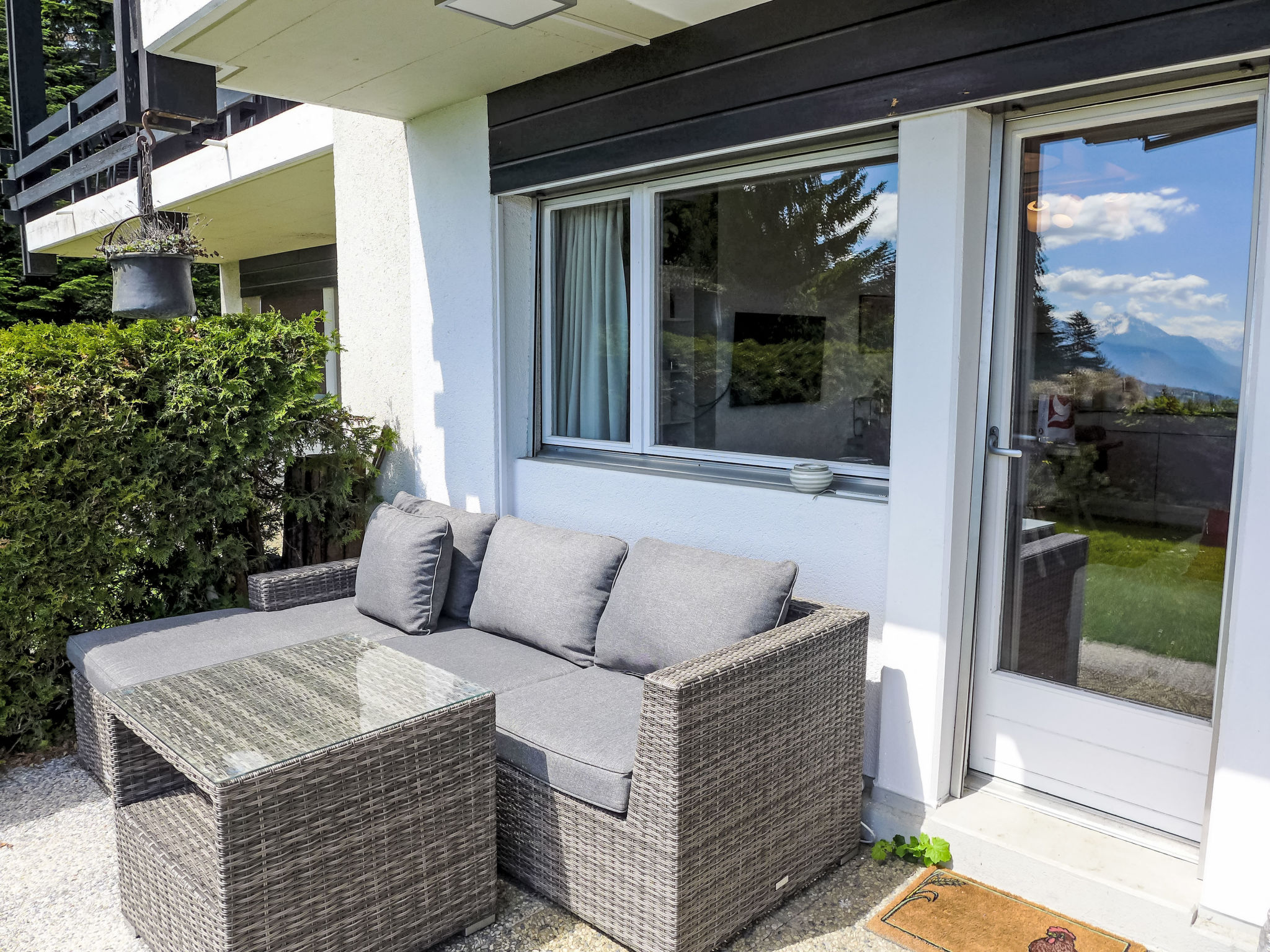 "Les Essampilles 25", apt 2 pièces 48 m2, au rez-de-chaussée. Complètement rénové en 2022, aménagement très confortable et de bon goût: séjour/salle à manger avec 1 divan-lit (140 cm, longueur 200 cm), TV (câblée) (écran plat). Sortie sur la terrasse, orientée sud-ouest. 1 chambre avec 1 grand-lit (180 cm, longueur 200 cm). Sortie sur la terrasse. Cuisine ouverte (four, lave-vaisselle, 4 plaques vitrocéramiques, grille-pain, bouilloire électrique, cafetière électrique, Capsules pour machine à café (Nespresso) (NON INCLUSES), appareil à raclette, combiné micro-ondes, service à fondue (fondue chinoise, fondue au fromage)). Douche/WC. Grande terrasse 45 m2. Meubles de terrasse, barbecue électrique (portable), chaises longues (2). Très belle vue sur les montagnes et la vallée. A disposition: fer à repasser, chaise haute pour enfant, lit bébé jusqu'à 2 ans, sèche-cheveux. Internet (Connexion WIFI, gratuit). Place de parking No 25. Veuillez noter: logement non-fumeur. Lit bébé pliable, sans linge de lit et sans duvet.