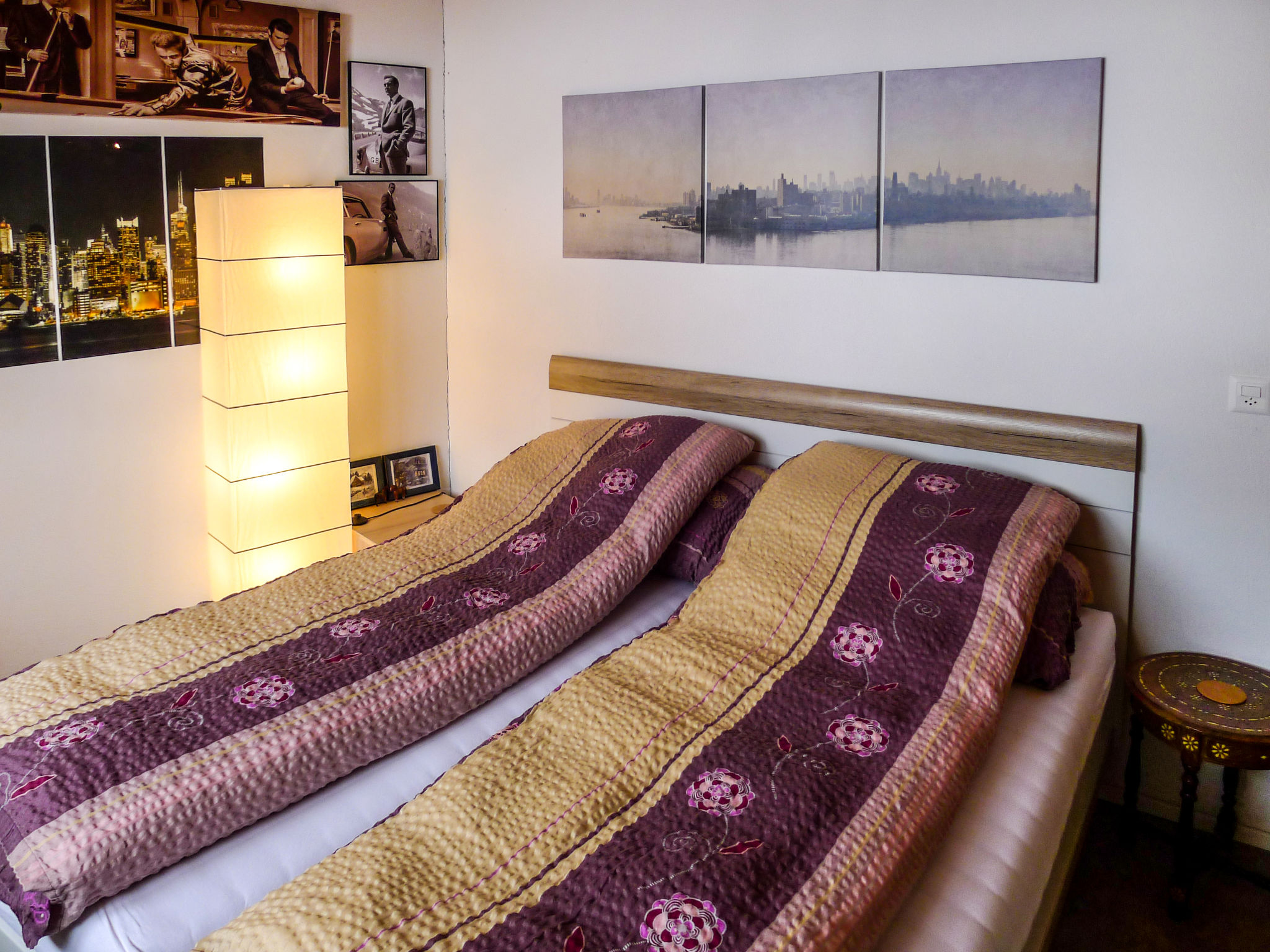 Apt 3 pièces 77 m2 sur 2 niveaux au 1er étage. Aménagement confortable et plaisant: séjour/salle à manger avec 1 couchage et TV (satellite) (écran plat). Sortie sur le balcon. 2 chambres, chaque chambre avec: 1 lit double. Cuisine ouverte (four, lave-vaisselle, 4 plaques vitrocéramiques, bouilloire électrique, micro-ondes, cafetière électrique, service à fondue (fondue au fromage)). Bain/WC. À l'étage supérieur: (escalier raide) galerie mansardée, ouverte avec 1 grand-lit. Balcon 7 m2. Mobilier de balcon, réduit. Belle vue sur les montagnes, les alentours et la localité. A disposition: lave-linge, sèche-linge. Internet (Connexion WIFI, gratuit). Place de parking (1 Voiture), garage No 2 (1 Voiture) près de la maison. Veuillez noter: logement non-fumeur. Au lieu d'une chambre fermée, des espaces de couchage sont situés dans une zone ouverte (galerie, alcôve...).