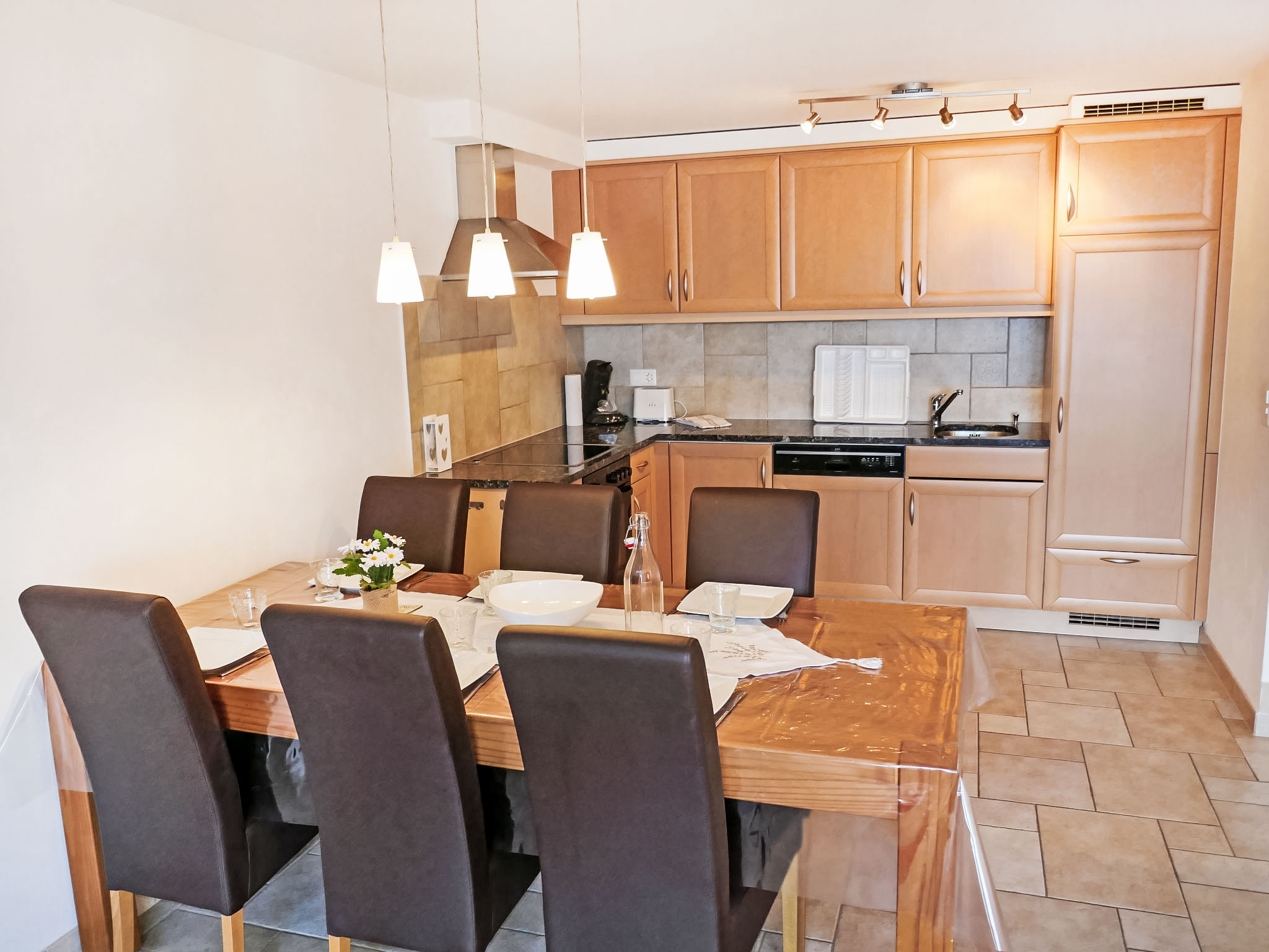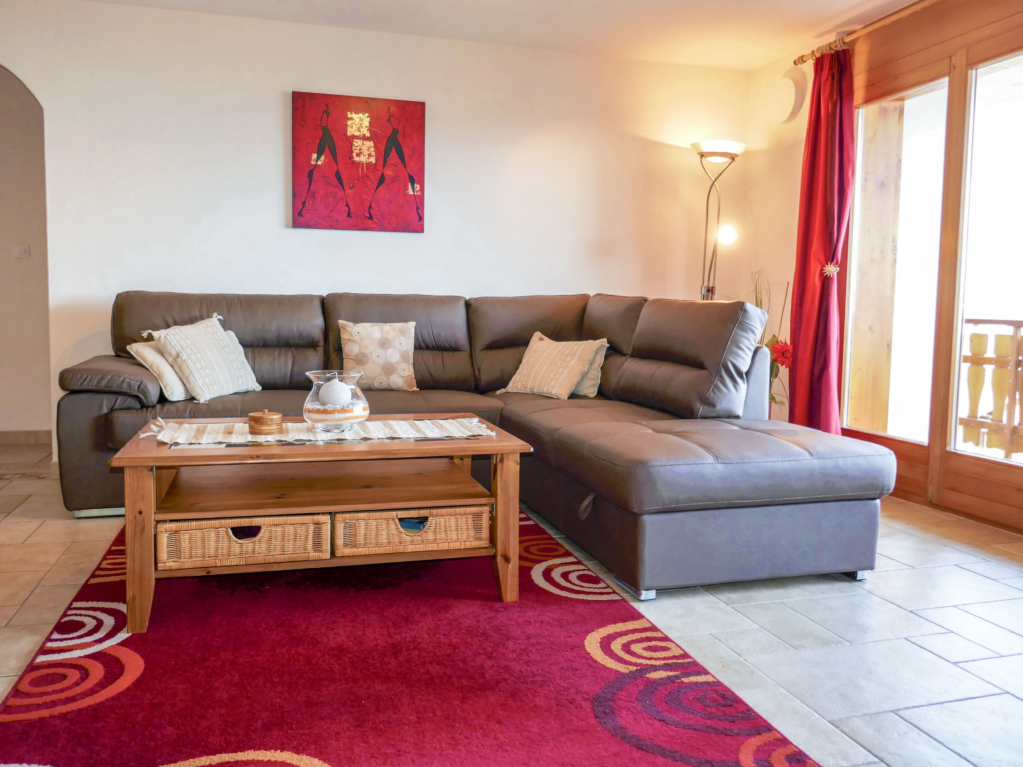 "Grand Panorama C5", apt 4 pièces 105 m2 au 3ème étage. Spacieux, aménagement confortable: grand séjour/salle à manger avec TV (câblée) et chaîne stéréo. Sortie sur le balcon, orientée nord. 1 grande chambre avec 1 grand-lit (160 cm, longueur 200 cm), douche/WC. Sortie sur le balcon, orientée nord. 2 chambres, chaque chambre avec: 1 grand-lit (160 cm, longueur 200 cm). Sortie sur la terrasse, orientée sud. Cuisine ouverte (four, lave-vaisselle, 4 plaques vitrocéramiques, grille-pain, bouilloire électrique, cafetière électrique, Capsules pour machine à café (Nespresso) (NON INCLUSES), appareil à raclette, service à fondue (fondue au fromage)). Bain/WC. Grand balcon, situation nord, terrasse, situation sud. Mobilier de balcon. Belle vue sur les montagnes et la vallée. A disposition: lit bébé, sèche-cheveux. Internet (Connexion WIFI, gratuit). Place de parking No c5 (couvert). Veuillez noter: logement non-fumeur. Ch’H1961.660.6