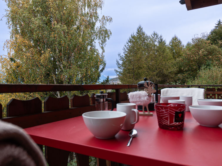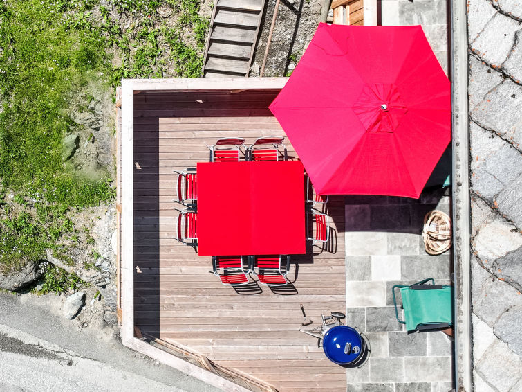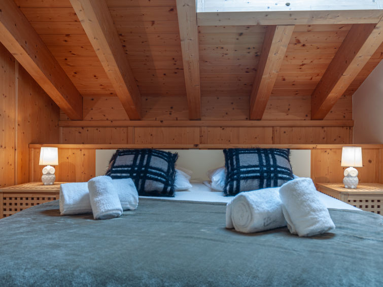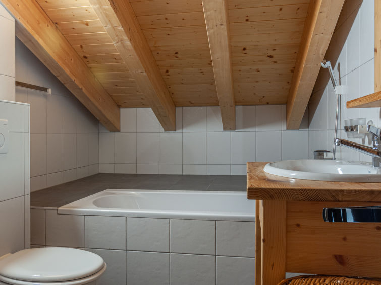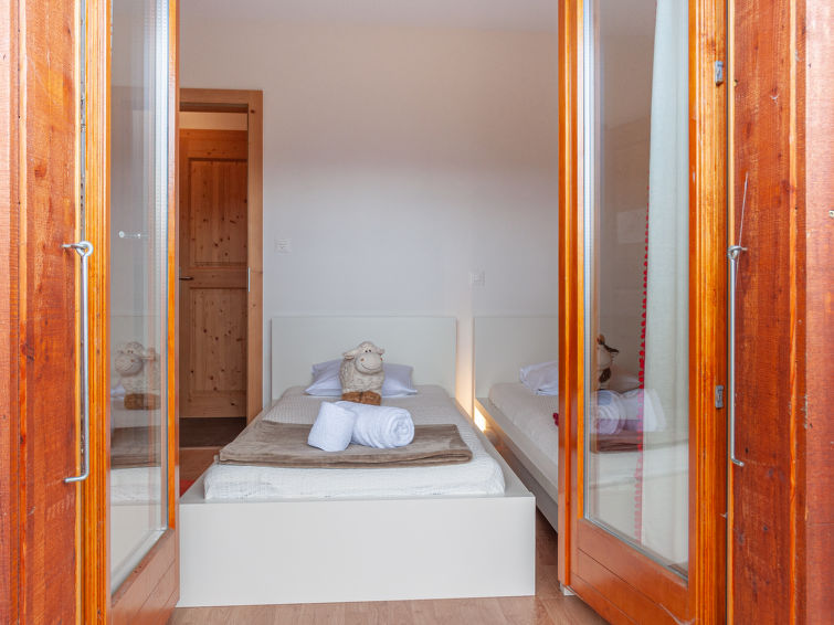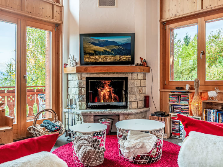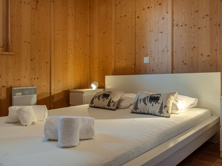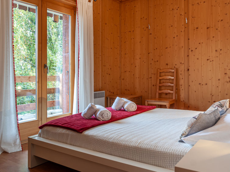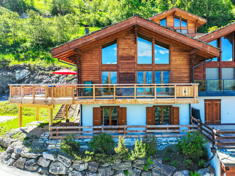 "Sneachta", chalet 5 pièces 115 m2 sur 3 niveaux. Logement idéal pour 4 adultes + 4 enfants. Aménagement confortable et plaisant: petite entrée. Séjour/salle à manger avec cheminée, TV (câblée) et DVD. Sortie sur la terrasse, orientée nord. Petite cuisine ouverte (four, lave-vaisselle, 4 plaques vitrocéramiques, grille-pain, bouilloire électrique, micro-ondes, congélateur, cafetière électrique, Capsules pour machine à café (Nespresso) (NON INCLUSES), appareil à raclette, service à fondue (fondue au fromage)). Douche/WC. Chauffage électrique, chauffage par le sol. À l'étage inférieur: 2 chambres, chaque chambre avec: 1 grand-lit (160 cm, longueur 200 cm). 1 chambre avec 2 lits (90 cm, longueur 200 cm). Bain/WC. À l'étage supérieur: 1 chambre avec 1 lit double (160 cm, longueur 200 cm), bain/douche/WC. Grande terrasse, situation nord et situation est. Meubles de terrasse, barbecue. Superbe vue panoramique sur les montagnes. A disposition: lave-linge, sèche-linge, chaise haute pour enfant. Internet (Connexion WIFI, gratuit). Place de parking (2 Voitures). Veuillez noter: adapté(e) aux familles. Maison non-fumeur. Maximum 1 animal/ chien autorisé.