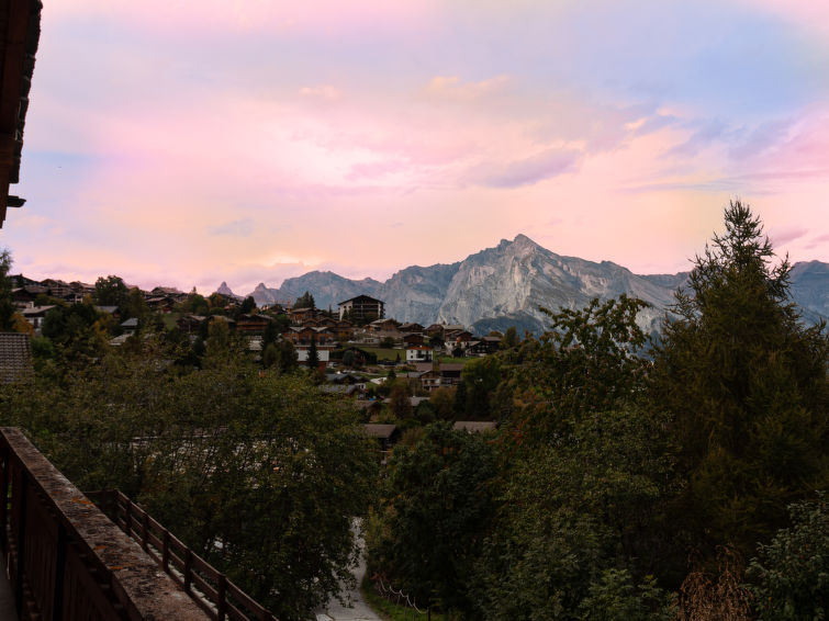 Haute-Nendaz: Beau chalet "Sneachta", 1'400 m au dessus du niveau de la mer, de 3 étages, mitoyen. Dans un quartier résidentiel. Place de parking (pour 2 voitures) sur le terrain, parking public 900 m. Magasins, restaurant 700 m, centre à 20 minutes à pieds, arrêt de bus "Bus Postal" 200 m, piscine 1.8 km. Terrain de golf (18 trous) 15 km, tennis 1.8 km, remontées mécaniques 1 km. Arrêt du ski-bus 200 m, piste de luge 1.5 km, patinoire 1.2 km, jeux pour enfants 1.5 km. Les domaines skiables de renommée sont facilement accessibles: Les 4 Vallées Tracouet 1 km. Région de randonnées: Bisse du Milieu 600 m. Veuillez noter: ski-bus gratuit.