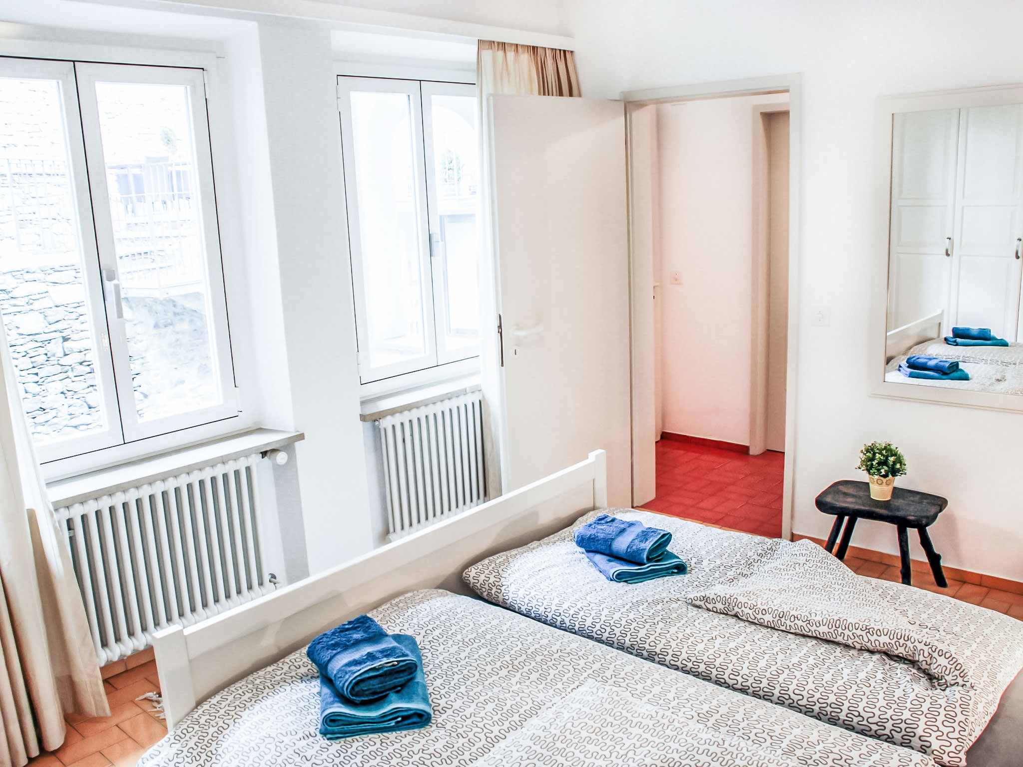 "Casa Eduardo Apt.2", apt 3 pièces 75 m2 au 1er étage, situation sud-est. Spacieux et clair, rénové en 2018, aménagement confortable et plaisant: séjour/salle à manger ouvert avec table pour les repas, TV (câblée), chaînes de TV internationales, écran plat, radio et chaîne stéréo. Sortie sur la terrasse. 1 chambre double avec 1 lit double (2 x 90 cm, longueur 200 cm). 1 chambre double avec 1 lit double (2 x 80 cm, longueur 200 cm). Cuisine (four, lave-vaisselle, 4 plaques vitrocéramiques, cafetière électrique, Capsules pour machine à café (Nespresso) (NON INCLUSES)). Douche/WC. Chauffage électrique. Terrasse 12 m2 partiellement couverte, situation sud. Meubles de terrasse. Très belle vue panoramique sur le lac, les montagnes et les alentours. A disposition: lave-linge, chaise haute pour enfant, lit bébé jusqu'à 3 ans (en sus), sèche-cheveux. Internet (Connexion WIFI, gratuit). Veuillez noter: adapté(e) aux familles. Logement non-fumeur. Extincteur, sans ascenseur. NL-00003745