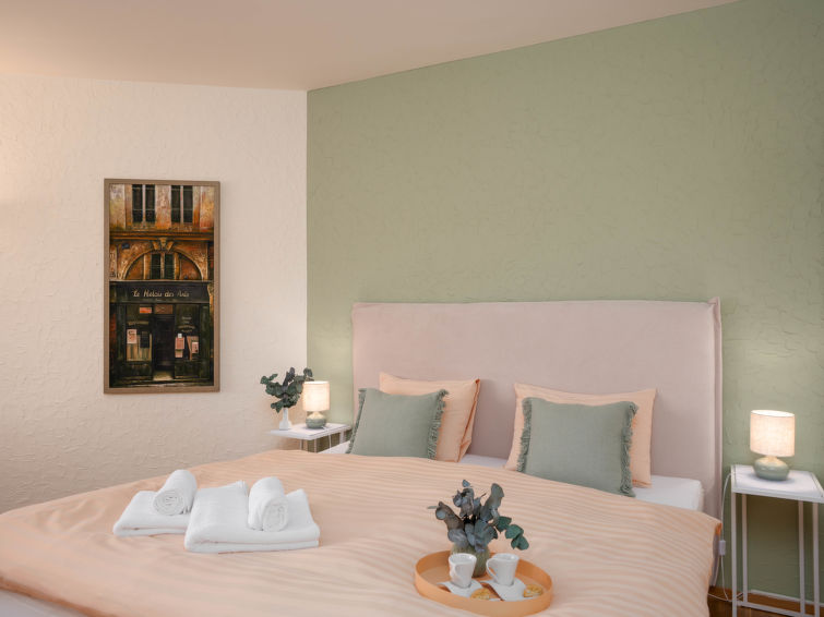 "Double Room Classic" studio 35 m2 au 1er étage, situation sud. Séjour/chambre à coucher avec 1 lit double (1 x 180 cm, longueur 200 cm), TV (satellite) et radio. Coin cuisine (four, cafetière électrique, Capsules pour machine à café (Nespresso) (NON INCLUSES)). Bain/WC. Chauffage au fuel. Balcon, situation sud. Belle vue sur le lac et les montagnes. A disposition: Internet (Connexion WIFI, gratuit). Veuillez noter: logement non-fumeur maison non-fumeur. Maximum 1 animal/ chien autorisé. NL-00004944